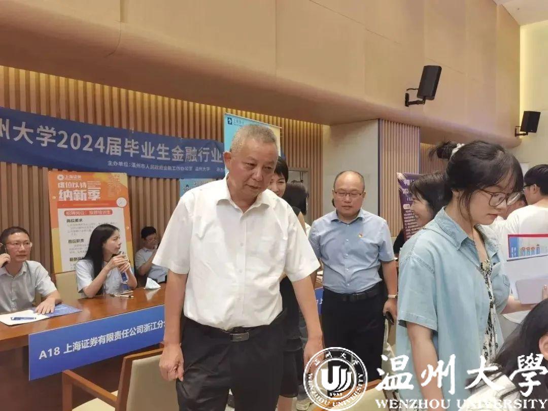 招聘会中,温州市金融办合作服务处副处长陈天同来到现场,对我校首场金融行业专场招聘会的举办予以充分的肯定,并期待能与我校持续紧密合作。