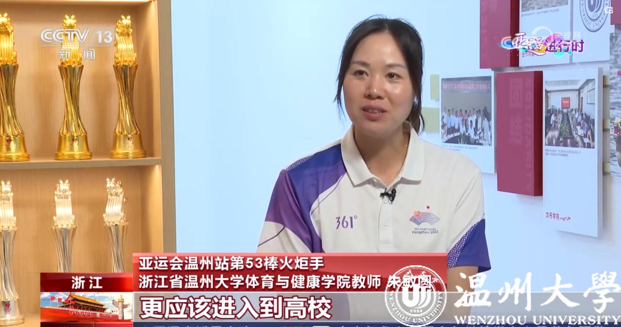 10月6日,我校体育与健康学院朱敏圆老师接受央视“亚运一点通”专访,讲述龙舟文化火种扎根温大校园的故事。朱老师在本届亚运会的皮划艇比赛项目中担任裁判员、温洲站第53棒火炬手,曾入选国家皮划艇青年队,在队五年获得过全运会四人艇、双人艇500米冠军,亚运会500米双人艇冠军等成绩。退役后,与水上运动始终割舍不掉情缘的她回到家乡温州,成为我校体育与健康学院的一名专任教师,主要负责参与组建了LY体育·(国际)官方网站龙舟队。前不久,她还带队参加了本届亚运会龙舟国家队的选拔赛。