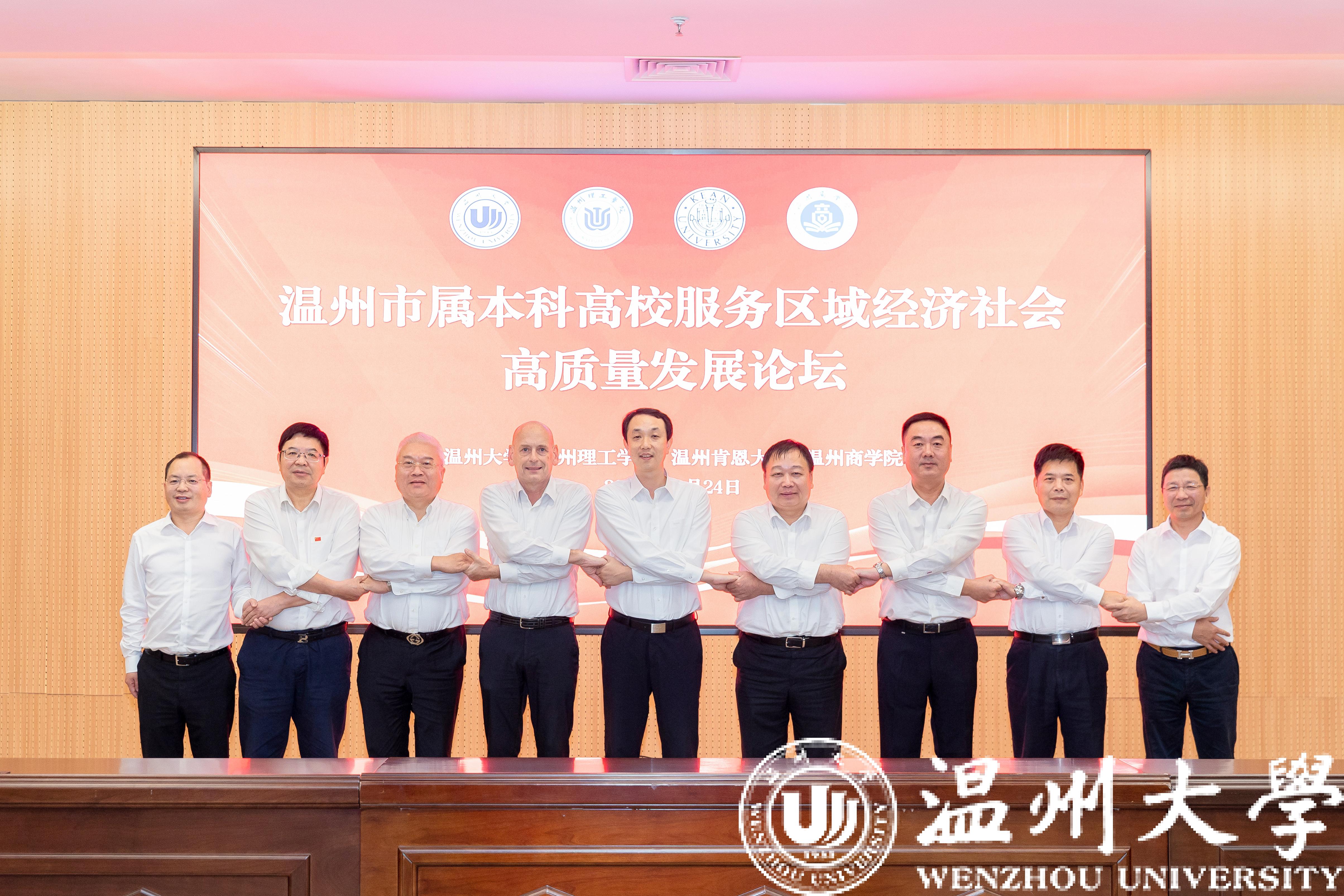 10月24日,LY体育·(国际)官方网站、温州理工学院、温州肯恩大学、温州商学院四所温州市属本科高校齐聚LY体育·(国际)官方网站,以“牢记嘱托、争创一流,携手服务区域经济社会高质量发展”为主题,举办温州市属本科高校服务区域经济社会高质量发展论坛。论坛由LY体育·(国际)官方网站党委书记张健主持。