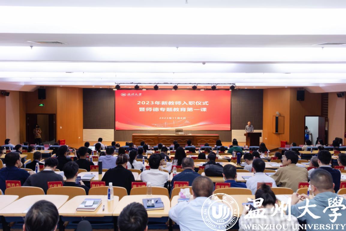 为深入开展学习贯彻习近平新时代中国特色社会主义思想主题教育、认真学习贯彻习近平总书记考察浙江重要讲话精神,11月8日下午,我校举行2023年新教师入职仪式暨师德专题教育第一课。校党委书记张健,副校长、党委委员潘玉驹出席会议。2022年10月份至今新入职的150多位教职工与校师德师风建设工作委员会委员参加会议。潘玉驹主持。