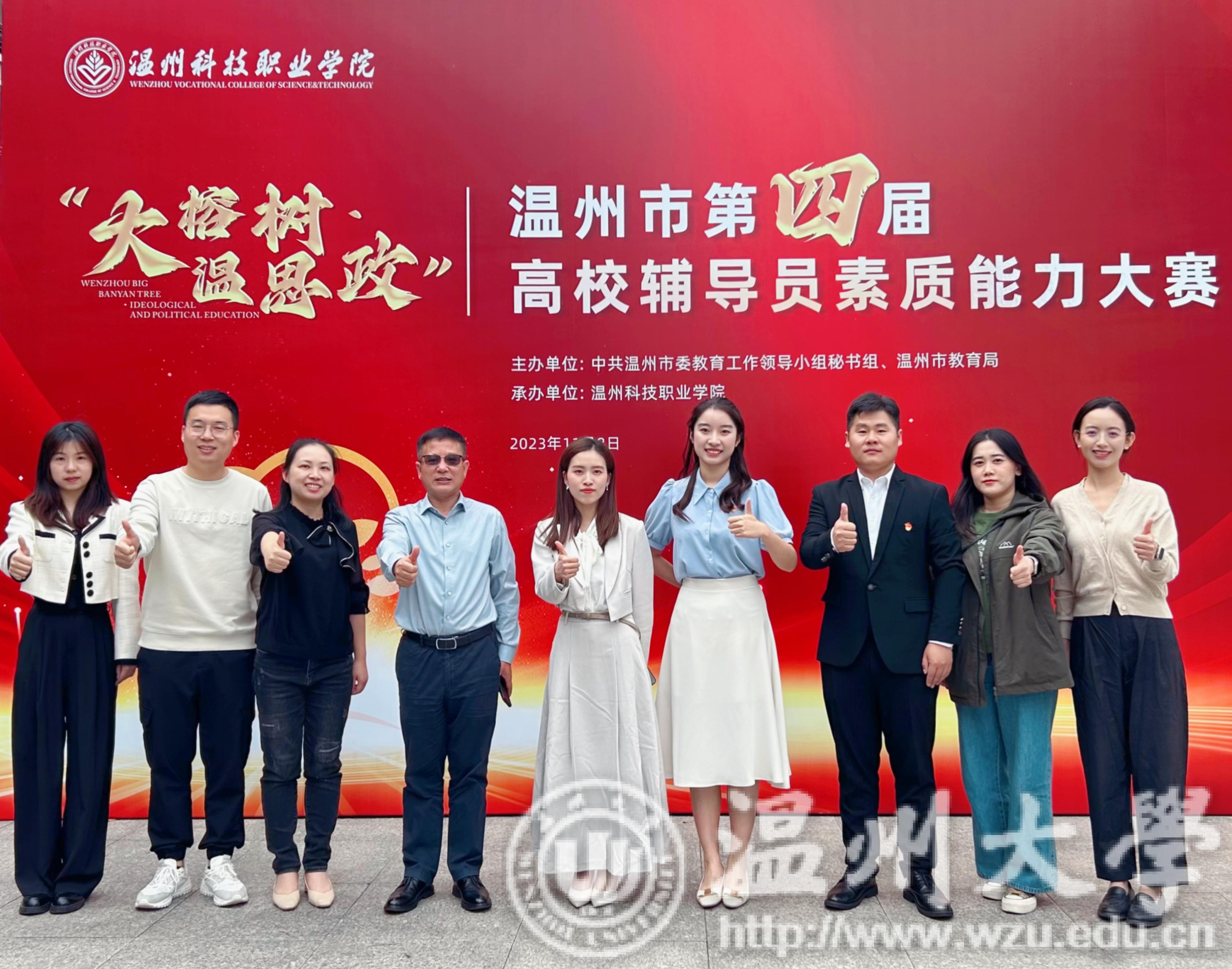 11月8日,温州市第四届高校辅导员素质能力大赛在温州科技职业学院举行,经过激烈角逐,我校机电工程学院辅导员徐琬莹荣获一等奖和案例研讨单项奖,法学院辅导员黄素素荣获二等奖,人文学院辅导员刘炳林荣获三等奖,我校荣获温州市第四届高校辅导员素质能力大赛优秀组织奖。
