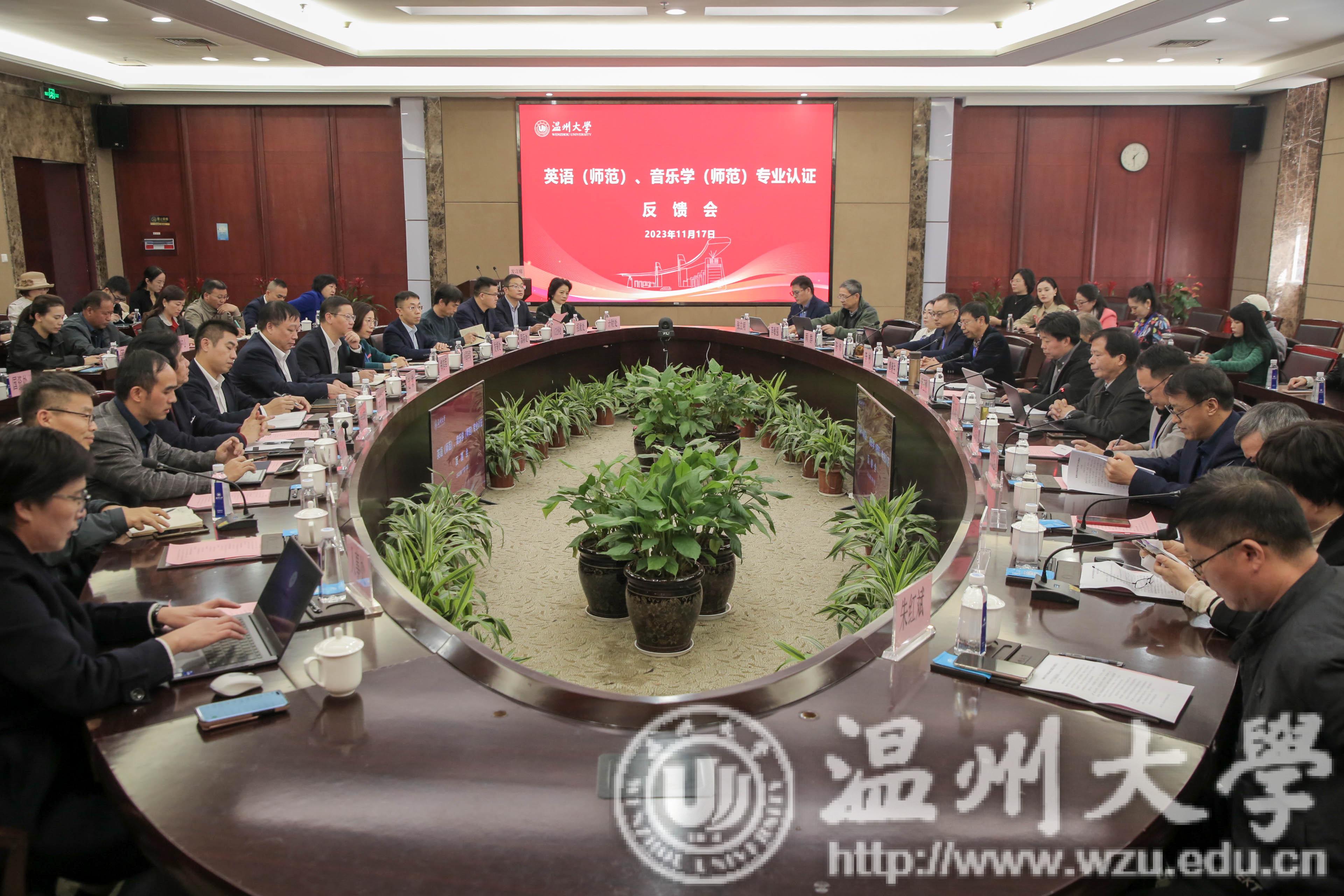 11月17日下午,在岩松堂白鹿厅,我校召开了英语(师范)和音乐学(师范)专业认证反馈会。英语(师范)专业认证专家组由淮南师范学院原校长曹杰旺教授担任组长,福建师范大学兰春寿教授、宿州学院李加强教授、宁波大学郑春龙教授、上海市金山中学徐晓燕校长等为专家组成员,丽水学院朱红斌为项目秘书;音乐学(师范)专业认证专家组由南京师范大学原副校长傅康生教授担任组长,湖州师范学院李彬教授、浙江音乐学院陈沛教授、嘉兴学院顾群教授、浙江省教育厅教师工作处原调研员李敏强等为专家组成员,黑龙江教育评估院张立明为项目秘书。浙江省教育考试院评估部薛玉刚老师,校长赵敏,党委委员、组织部部长郑信军出席会议,相关职能部门负责人、两个专业所在学院的领导和教师代表、其他承担师范生培养学院代表参加会议。