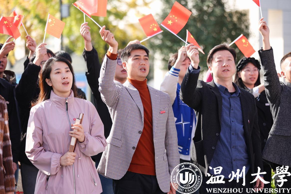 张健在动员讲话中指出,歌剧《五星红旗》历经四年的淬炼,先后获得国家艺术基金传播交流推广资助项目、第四届中国歌剧节优秀剧目奖、浙江文化艺术发展基金资助项目等荣誉,已然成为我校以艺术之美点亮思政之光的金字招牌。他以三句诗词寄语巡演团。一是努力奋斗,以“敢教日月换新天”的担当,克服种种困难,着力提升艺术水准,高质量完成本次巡演;二是砥砺有为,以“千磨万击还坚劲”的勇气,增强做中国人的志气、骨气、底气,展现温大人的风采;三是坚定信念,以“一颗红心永向党”的忠诚,将此次巡演作为彰显对党忠诚、坚定信念信仰的重要载体,以“请党放心,强国有我”的使命感和责任感,将爱党爱国的一腔赤诚投入到巡演全过程,转化为支撑高质量巡演的精神力量。