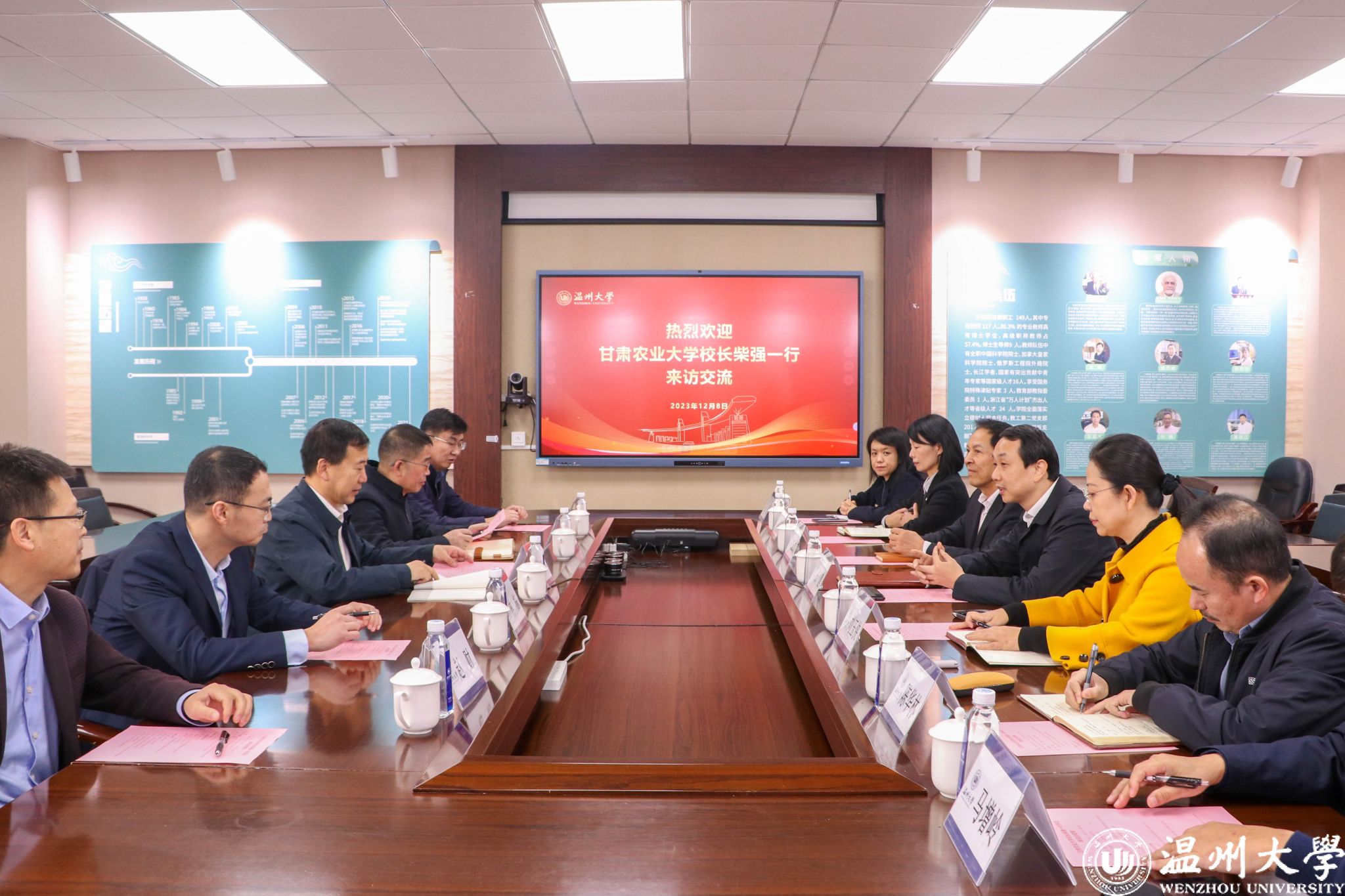 12月8日上午甘肃农业大学校长柴强一行校考察调研,校党委书记张健、副校长刘玉侠、加拿大皇家科学院院士甘延太教授、人事处、生环学院相关负责人及教师代表参加。