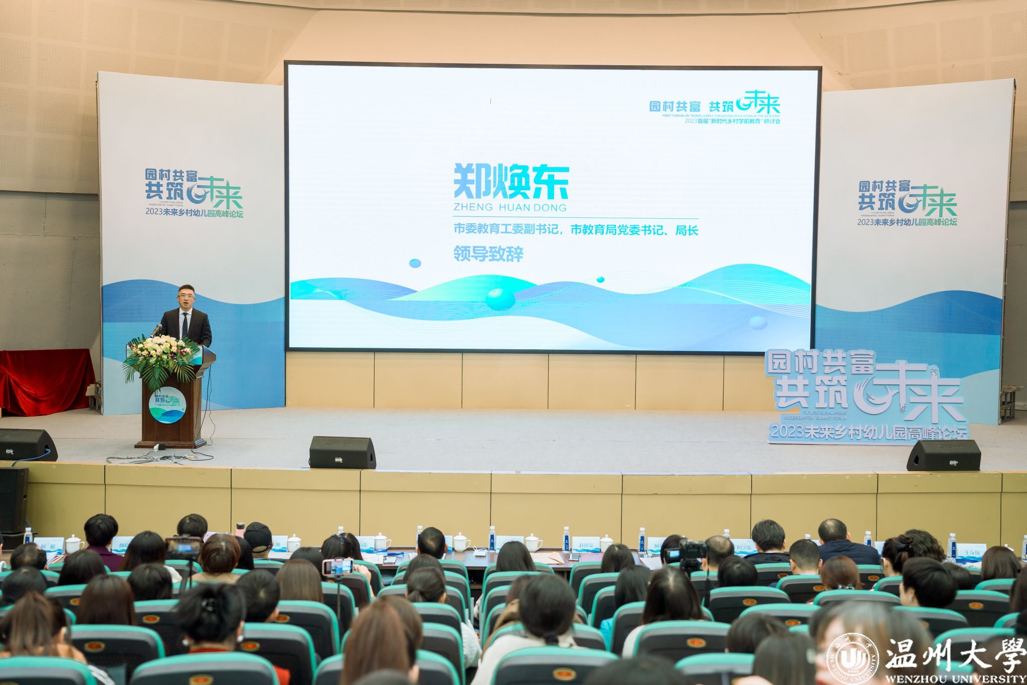 郑焕东在讲话中指出,温州一直以来坚定不移建设好学校、塑造好老师、培育好学生、营造好氛围,努力推进教育高质量发展,办好人民满意的教育,近年来取得了一系列突破性的进展。在聚焦共同富裕的背景下,当前正加快城乡学前教育优质均衡发展,全力以赴打造未来乡村园区。他希望能够沿着走向综合性、实践性的未来教育发展路径,不懈探索和布局可推广的未来教育新样态,创建温州学前教育的智慧力量。