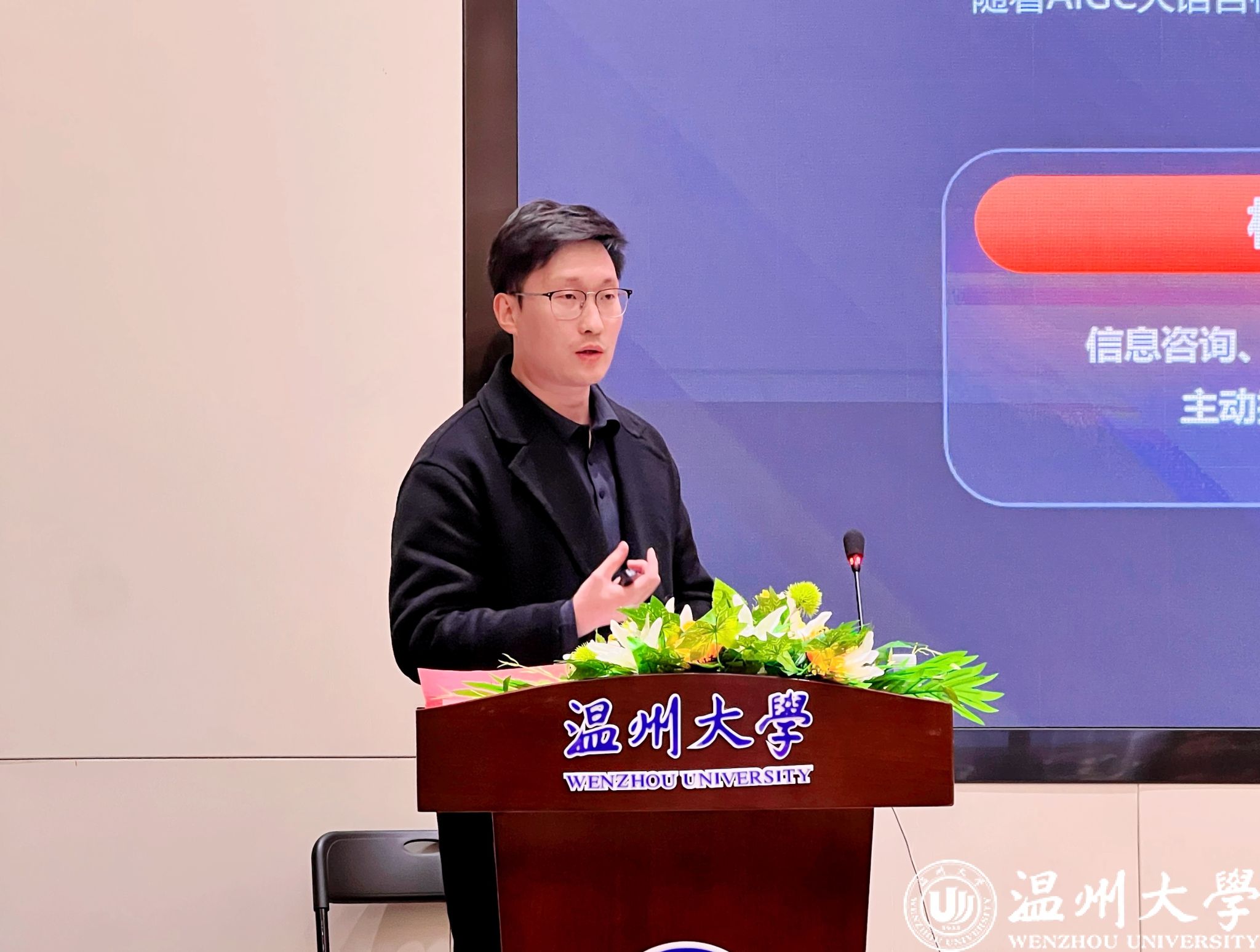 LY体育·(国际)官方网站信息技术中心副主任姚渺波作了主题为“AI在高校场景应用的思考和探索”的分享。姚渺波从AI应用和落地场景切入,分析了AI技术对学校数字化发展带来的机遇和挑战。他分享了学校在AI服务教科研应用上的一些探索,比如校园答疑与智能办事的ChatWZU(虚拟形象:文文学姐)如何高效服务的工作模式、AI助教在课前、课中、课后的哪些环节发挥作用以提高教学质量、科研AI如何更好地帮助师生开展科研活动等。