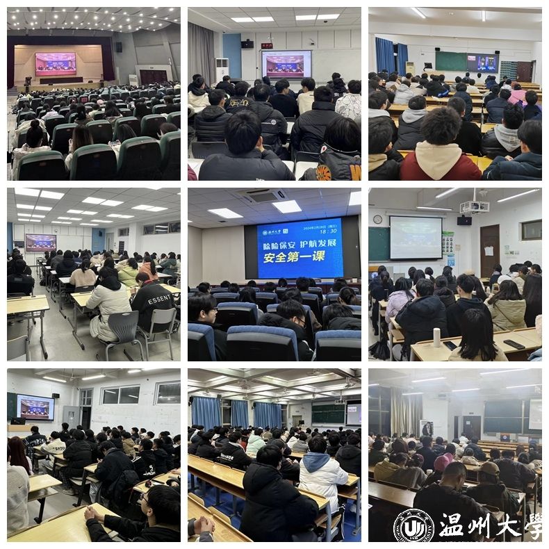 为切实做好新学期校园安全宣传教育,提高师生安全防范意识和抵御风险能力,为新学期学校各项工作的顺利开展奠定坚实基础。2月28日晚,我校圆满举办了一堂2024年春季新学期“安全第一课”。各学院精心组织师生员工集中在线学习,观看人数达1.9万余人。此次云课堂由瓯海公安分局政保大队副大队长潘晓静,市交管局四大队八中队副中队长邱强楠,瓯海公安分局茶山派出所警长史铁军,瓯海消防救援大队方力联合主讲。