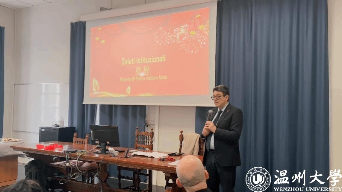 锡耶纳大学校长罗伯托·迪·皮埃特拉致辞。他指出,锡耶纳大学对孔子课堂的落成非常满意,这也是锡耶纳大学本学年教学活动的亮点特色,希望继续做好校内外的中文教学工作。