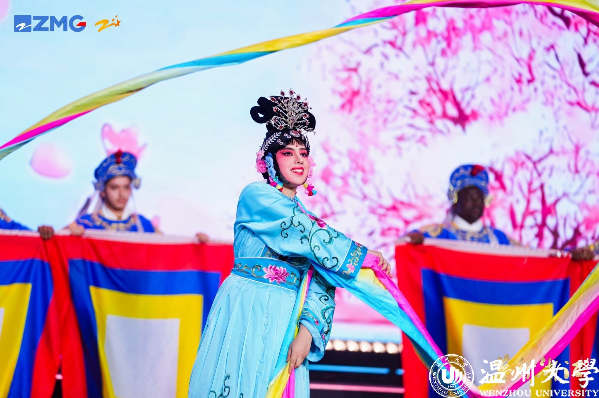 我校来自摩洛哥、尼日利亚、加纳、越南、塔吉克斯坦等国的17位留学生带着戏曲串烧节目《华彩梨园》惊艳亮相。节目由天女散花、铡美案、送凤冠及红楼梦等戏曲中的经典片段构成。华丽的戏服、精彩的表演,赢得了现场领导以及观众们的阵阵掌声。“中华戏曲真的太有意思了,通过这次展演活动我对中华文化更加着迷了,希望未来能够参与到更多类似的活动中,感受中华文化的魅力......”,来自尼日利亚的留学生CHIMEZIE GIFT CHIDERA在现场接受采访时激动地讲道。