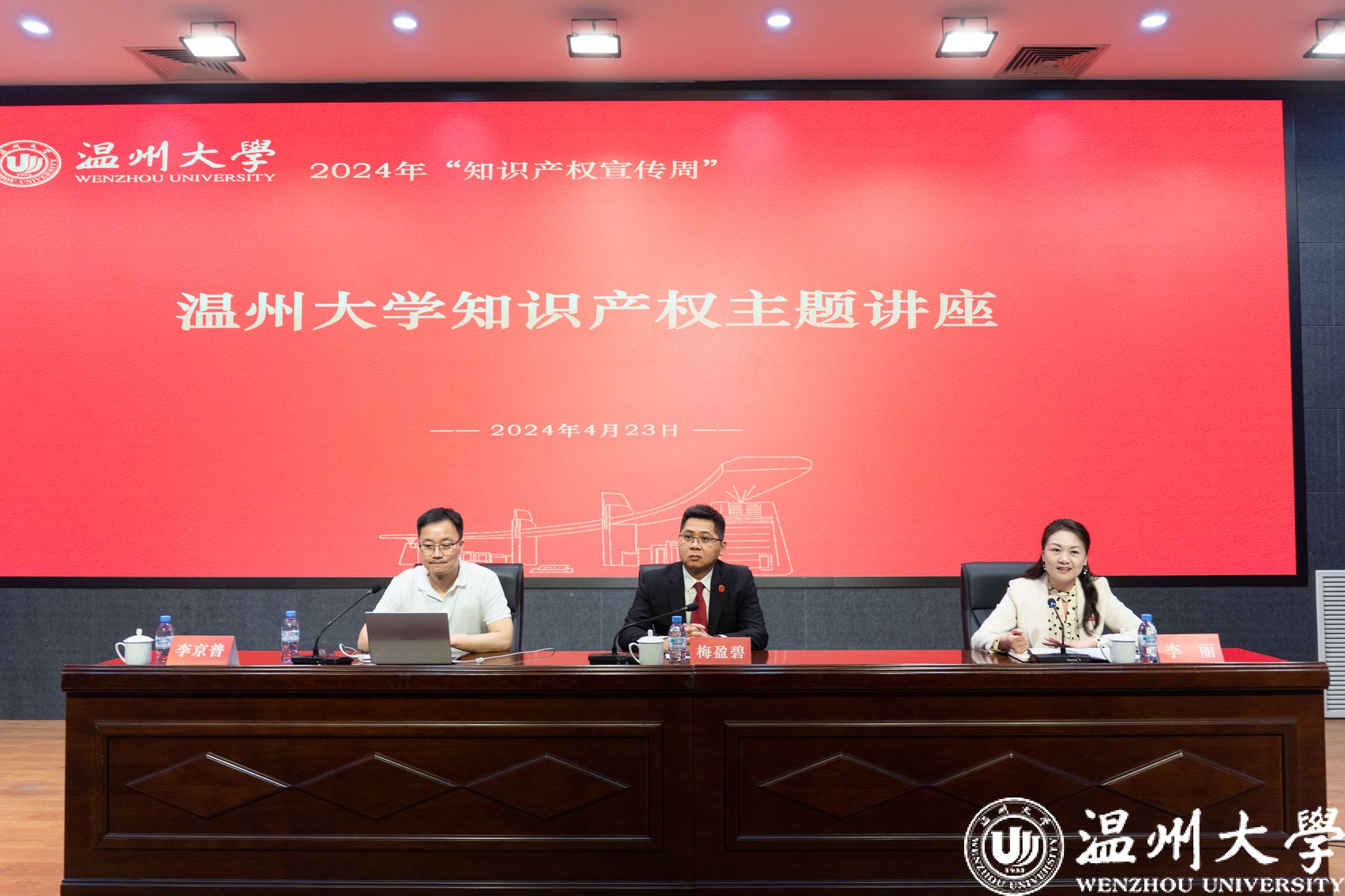 4月23日,在岩松堂步青厅开展知识产权主题讲座,LY体育·(国际)官方网站法学院李京普老师从什么是“知识产权”和“知识产权驱动可持续发展”两个方面为我校广大学子普及知识产权知识;瓯海区人民法院梅盈碧庭长从当前“刑事打击、行政保护、司法保护”等方面向我们揭示了知识产权的无处不在,提醒我们无论是使用别人的作品,还是创作自己的作品,都应当尊重和保护知识产权。此次讲座不仅增强了全校师生对知识产权重要性的认识,更激发了对创新的热情和对知识产权的尊重。