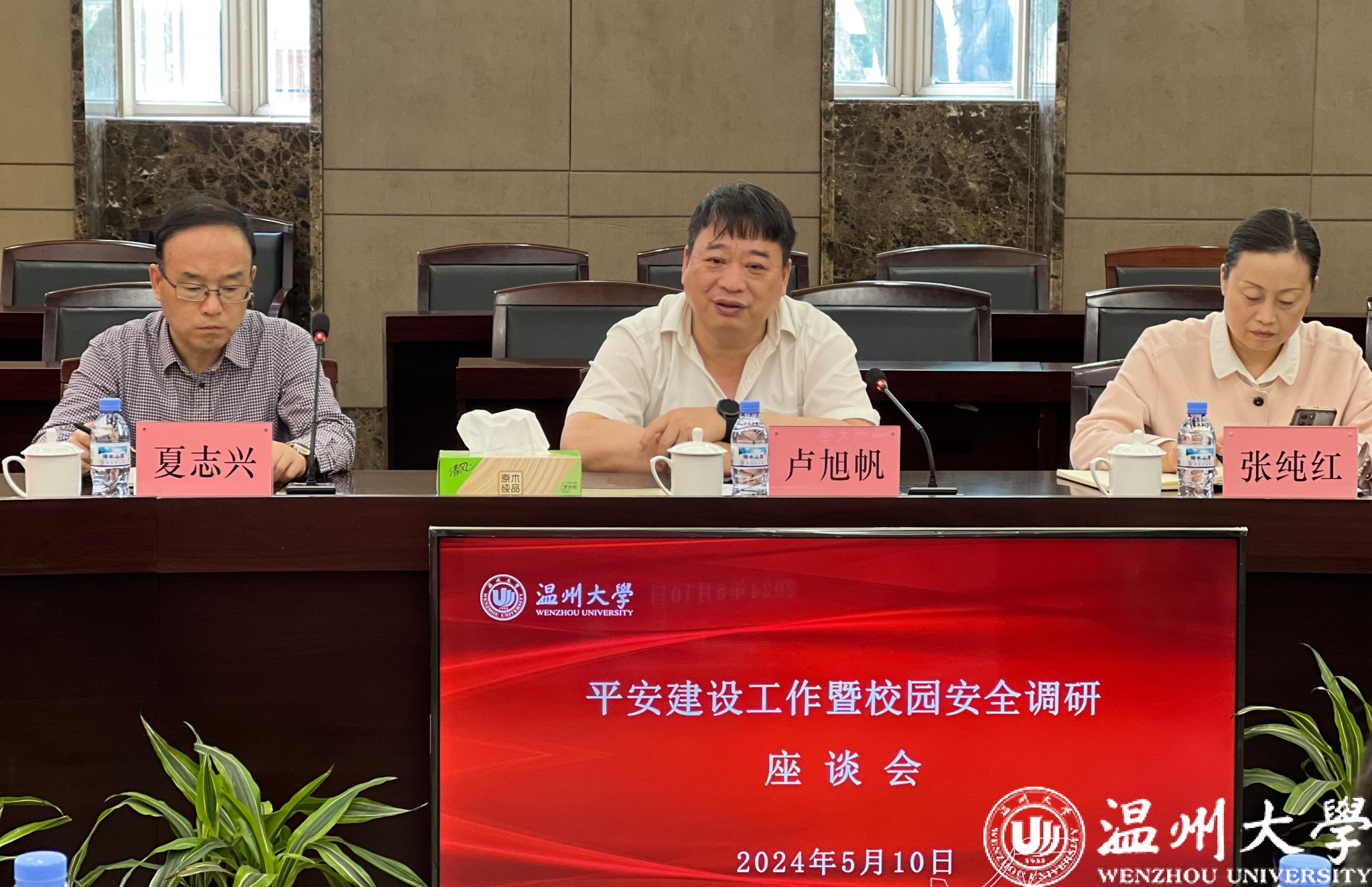 5月10日上午,瓯海平安建设工作暨校园安全调研座谈会在我校召开,市委政法委常务副书记卢旭帆、校党委副书记庄兴忠出席会议并讲话。相关职能单位负责人参会调研。