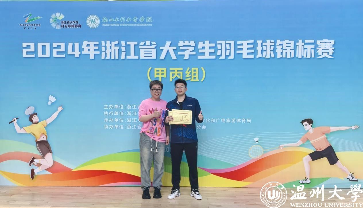 5月20日-25日,2024年浙江省大学生羽毛球锦标赛(甲丙组)在湖州南浔浙江水利水电学院落下帷幕,省内共50多所高校,500多人参加竞技。我校羽毛球队取得丙组男子单打第二、丙组女子单打第五、甲组女子单打第六的佳绩。
