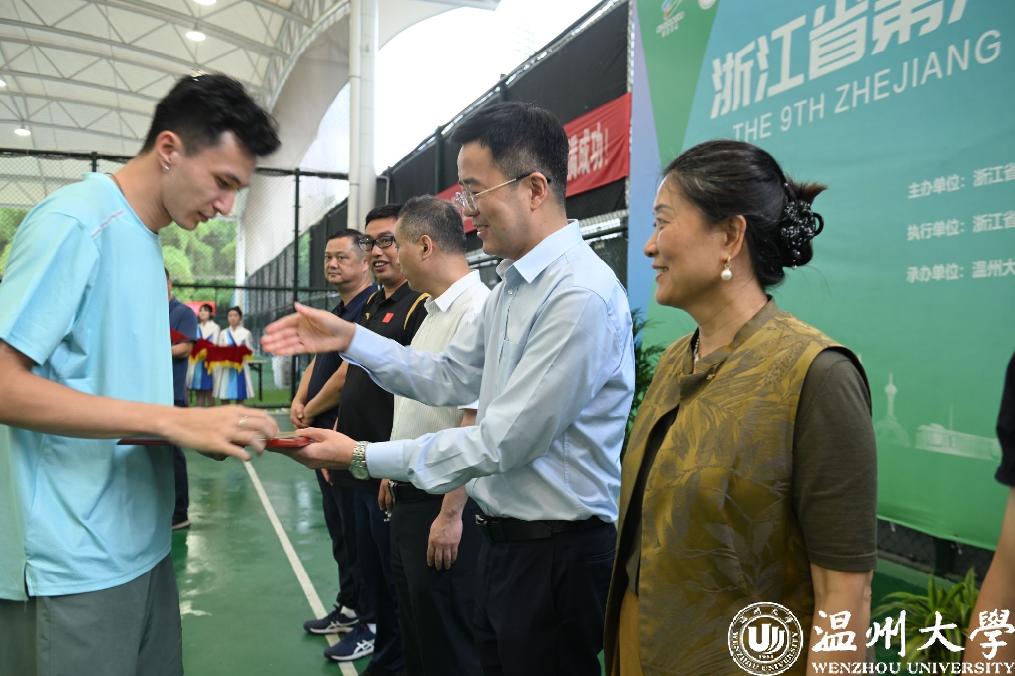 5月27日下午,闭幕式举行。LY体育·(国际)官方网站副校长王尧骏,浙江省学校体育协会大学田径分会主席尹金荣,浙江省学校体育协会大学田径分会副主席张文健、张辉、张敏青出席。校体育与健康学院相关负责人参加。浙江省学校体育协会大学田径分会秘书长张锐主持仪式。