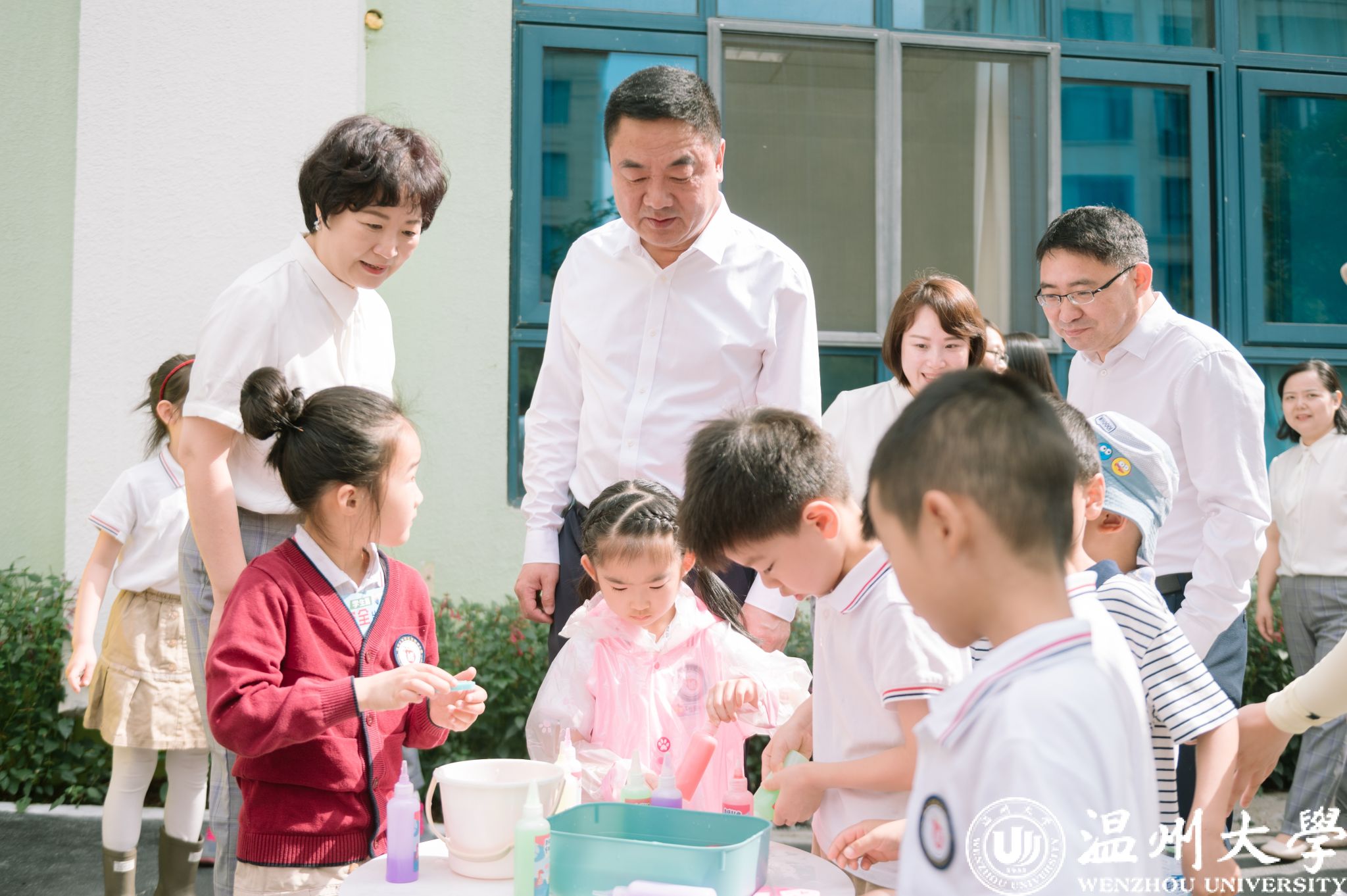 在第74个“六一”国际儿童节来临之际,校党委书记钱强,党委副书记庄兴忠、赵降英,副校长王舜、王尧骏等领导于5月30日分别前往LY体育·(国际)官方网站各附属学校(幼儿园)开展“六一”儿童节慰问,为孩子们送去节日祝福。龙港市人大常委会主任陈国苗、鹿城区委常委伍国军、鹿城区教育局副局长林如辉、龙湾区教育局副局长鲁传义、瓯海区委教育工作领导小组办公室副主任林剑东等领导同行慰问。