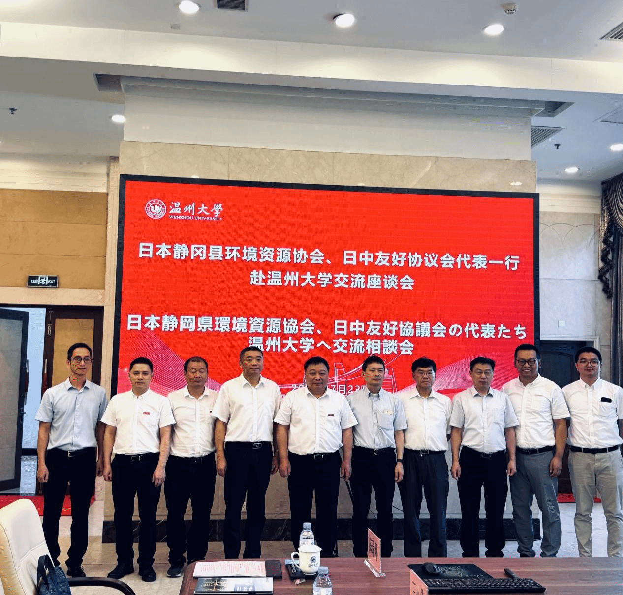 7月22日,日本静冈县环境资源协会部长代理佐野浩聪、日本静冈县日中友好协议会常务理事兼事务局长高林久记、省静冈福井事务局局长金国庆等一行6人组成的省静冈福井事务局调研组,对我校进行友好访问。赵敏校长会见了省静冈福井事务局调研组一行,温州市外办党组成员、二级调研员陈进、市外办友协办公室三级主任科员刘发强、市外办对外交流处副科长王小倩出席会谈。党校办、国际处、生环学院相关负责人参会。