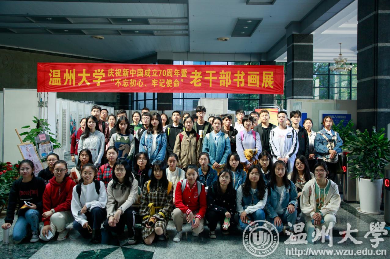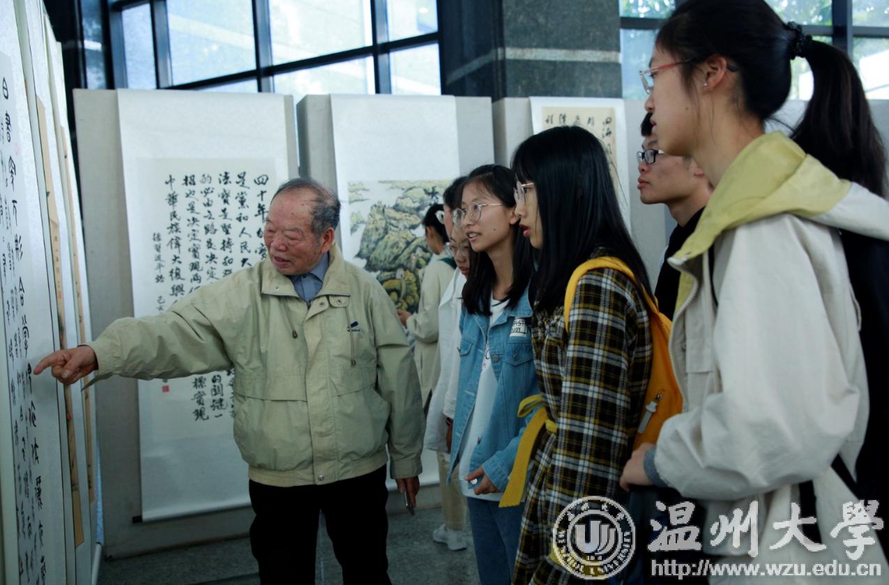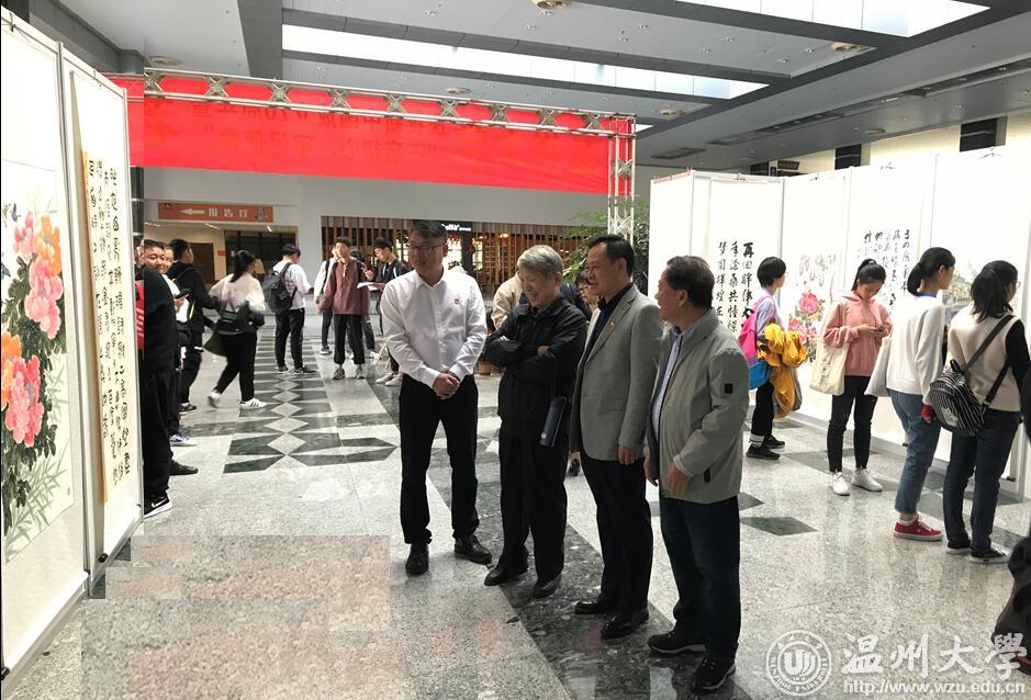 翰墨绘盛世,丹青颂祖国。10月31日上午,由校党委宣传部、离退休工作处、图书馆联合主办,老干部书画院承办的LY体育·(国际)官方网站庆祝新中国成立70周年暨“不忘初心、牢记使命”老干部书画作品展在图书馆一楼开展。学校老领导金礼义、林选青、毛政敏,宣传部、瓯江学院、离退休工作处负责人,老书画家们及我校师生现场观展。