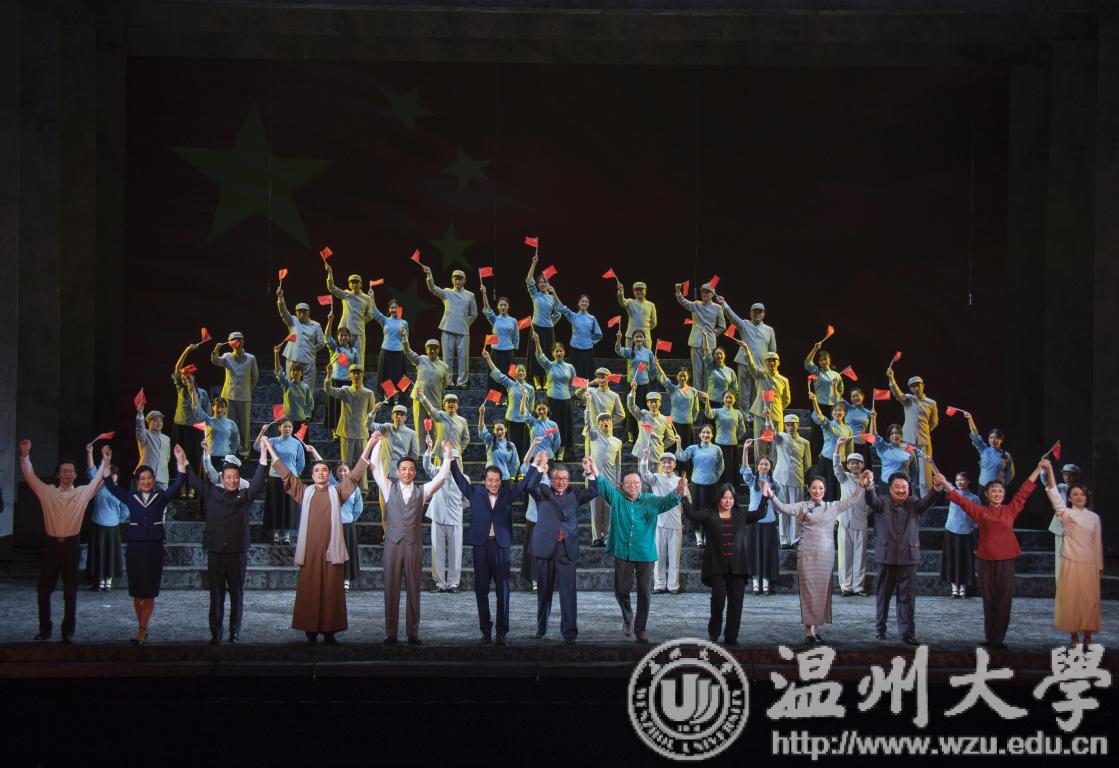 “国旗啊,国旗,祖国的象征;国旗啊,国旗,你指引前进的方向。我们站在太阳升起的地方,心中的旗帜永远飘扬!”10月7、8日晚,由我校与温州市委宣传部、瑞安市委联合出品的歌剧《五星红旗》在温州市大剧院盛大试演,献礼新中国70华诞。省委第三巡回指导组、第十五巡回指导组、市四套班子领导、全体校领导等3000余人观看了演出。《五星红旗》以艺术精品的气质完美亮相,其高雅的文学品位、独特的艺术魅力,达到了震撼人心、涤荡心灵的艺术效果,激发了人们的爱国主义热情和不忘初心、牢记使命、砥砺前行的责任感,演出取得圆满成功。
