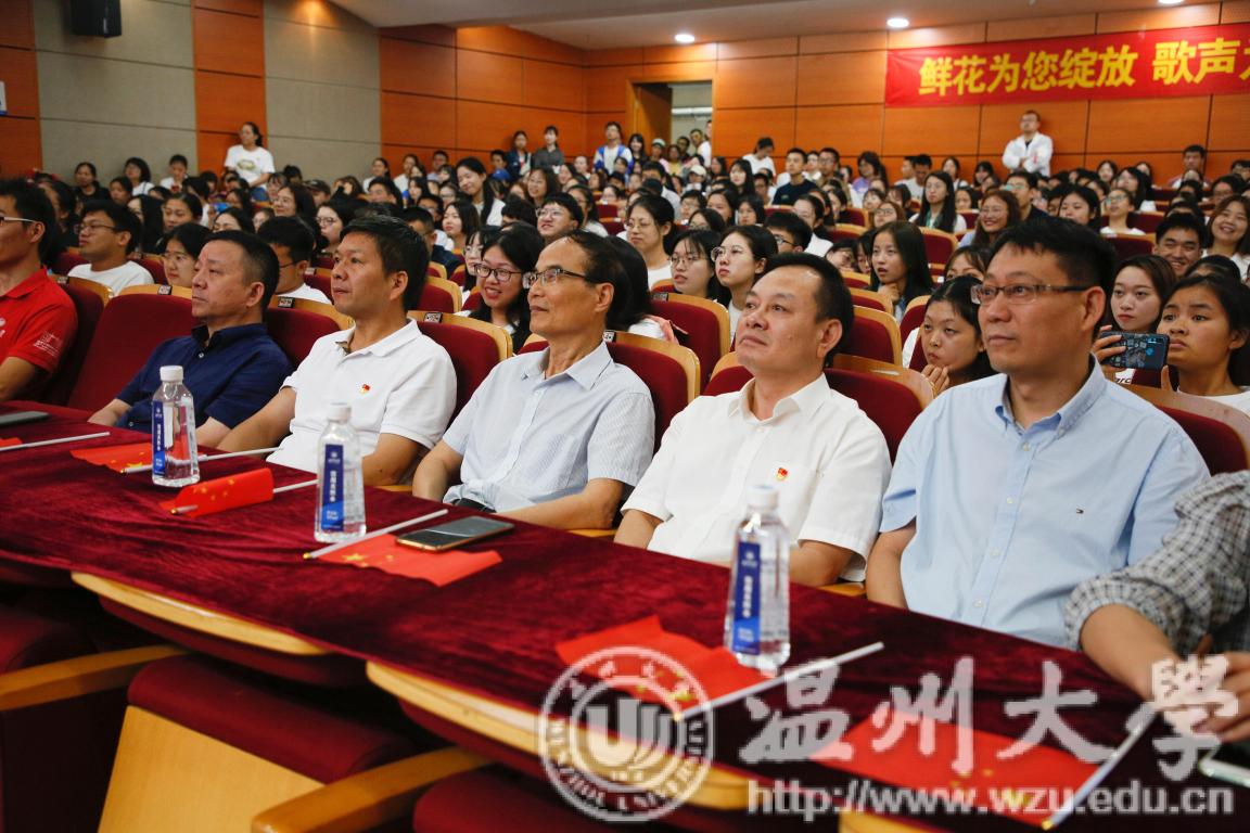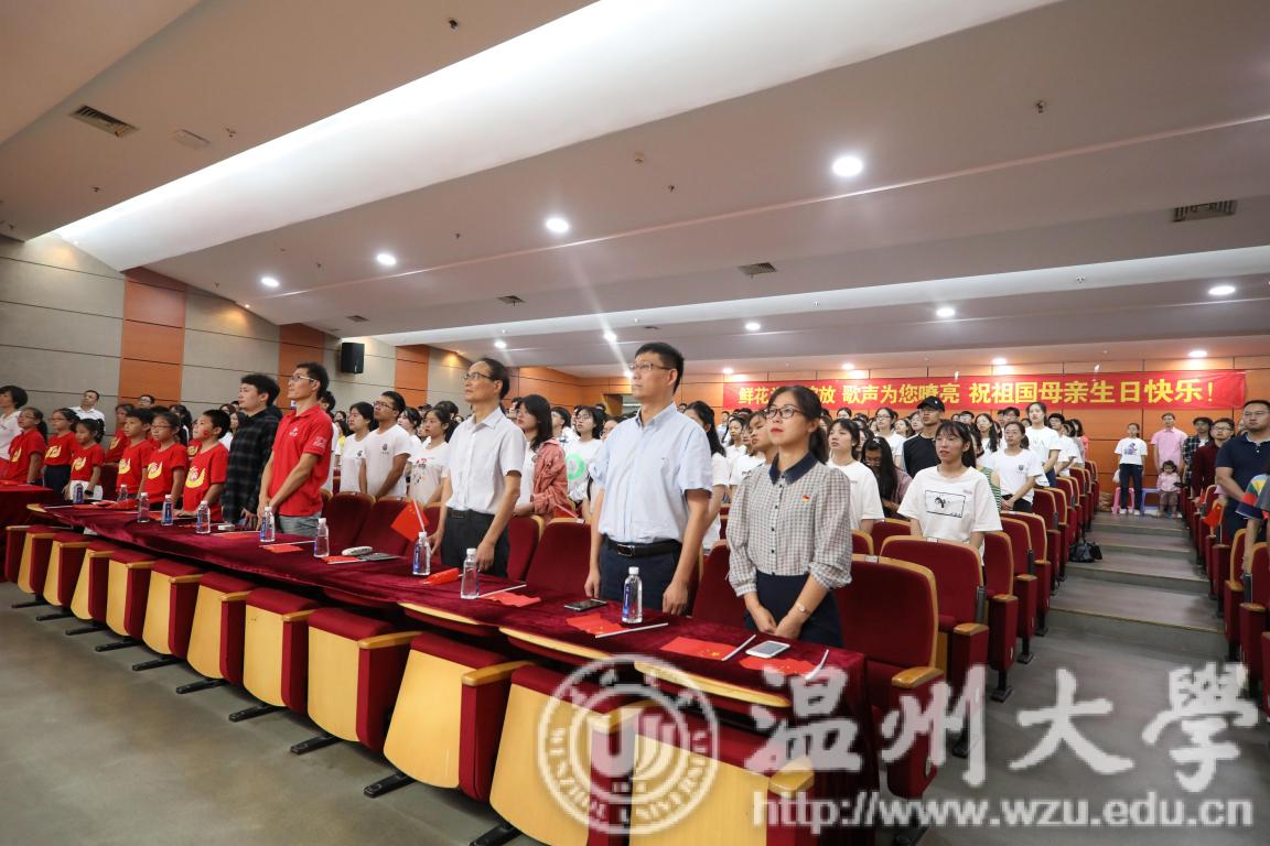 上午九点,活动正式拉开序幕,在场师生合唱《LY体育·(国际)官方网站校歌》“大哉师道天下尊,承往哲兮启后人。厚培德本,深濬智源,学成致用教化谆。光大国族兮,造福人群。东海水,雁荡山,我温大精神,浩浩宕宕。”大屏幕上徐徐展开和闪现的照片上寄托着温大人对祖国母亲最真挚的祝福,诉说着温大人对祖国母亲诚挚的愿望。