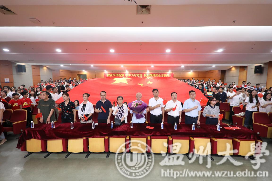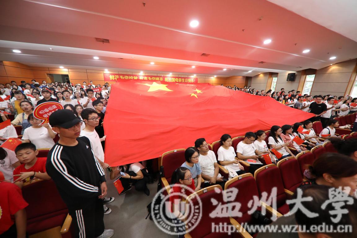 中华人民共和国壮丽前行,迎来了七十周年诞辰。10月1日上午,我校在南校区岩松堂雁山厅举办了温大师生观看国庆70周年庆祝活动,共同为祖国庆生。校领导谢树华、庄兴忠、潘玉驹等与师生一同参加庆祝活动。