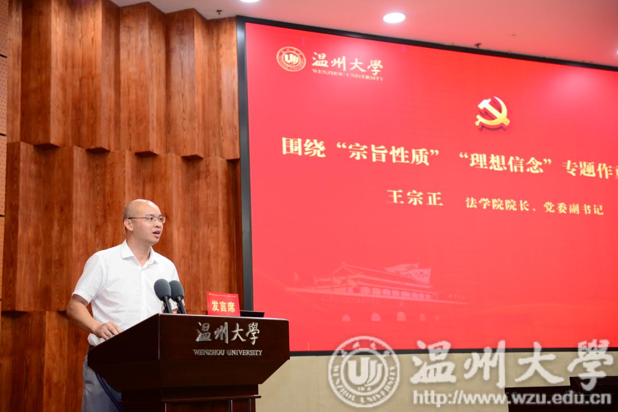 法学院院长王宗正同志作题为《坚定理想信念,牢记初心使命》的重点发言。他认为,作为高校教师,我们坚持理想信念,必须做好立德树人这篇文章。