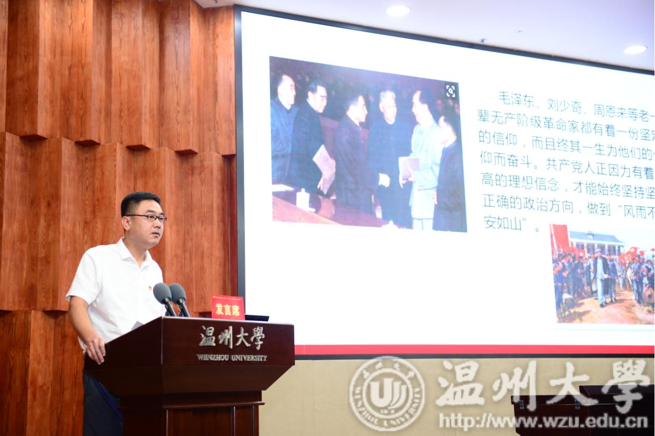 副校长、党委委员钱强同志作题为《坚定理想信念,勇担立德树人使命》的重点发言。他从“共产党人理想信念的精神内涵”“坚定理想信念的重要性和必要性”“落实立德树人的关键在于坚定理想信念”三个方面,向大家交流了自己在学习中的所思所悟,认为只有“不忘初心、牢记使命”,立德树人才能成为教育者的自觉担当,成为一种教育常态。
