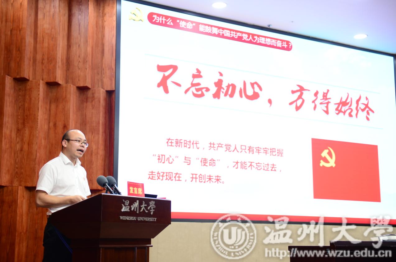 23日下午,全体同志在雁山厅集中学习研讨,由校长、党委副书记赵敏同志主持。省委第十五巡回指导组副组长吴金良、成员吴南丰莅临指导。马克思主义学院副院长、党委副书记卓高生同志作《中国共产党人的初心与使命》专题辅导报告。他回顾了我党建党之初的历史背景,带领与会同志共同学习了什么是中国共产党人的“初心和使命”,报告中提到的“七问”引人深思,再次让与会同志认识到了开展“不忘初心、牢记使命”主题教育的重要意义。