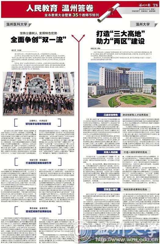 编者按:9月10下午下午,市委市政府召开全市教育大会暨第35个教师节庆祝大会。市四套班子领导与我市教师和教育工作者代表等欢聚一堂,共同庆祝教师节这个崇高的节日,共同谋划教育这个光辉的事业。温州日报推出教师节特刊,刊发LY体育·(国际)官方网站专栏文章《打造“三大高地”,助力“两区”建设》,现全文转载,以飨读者。