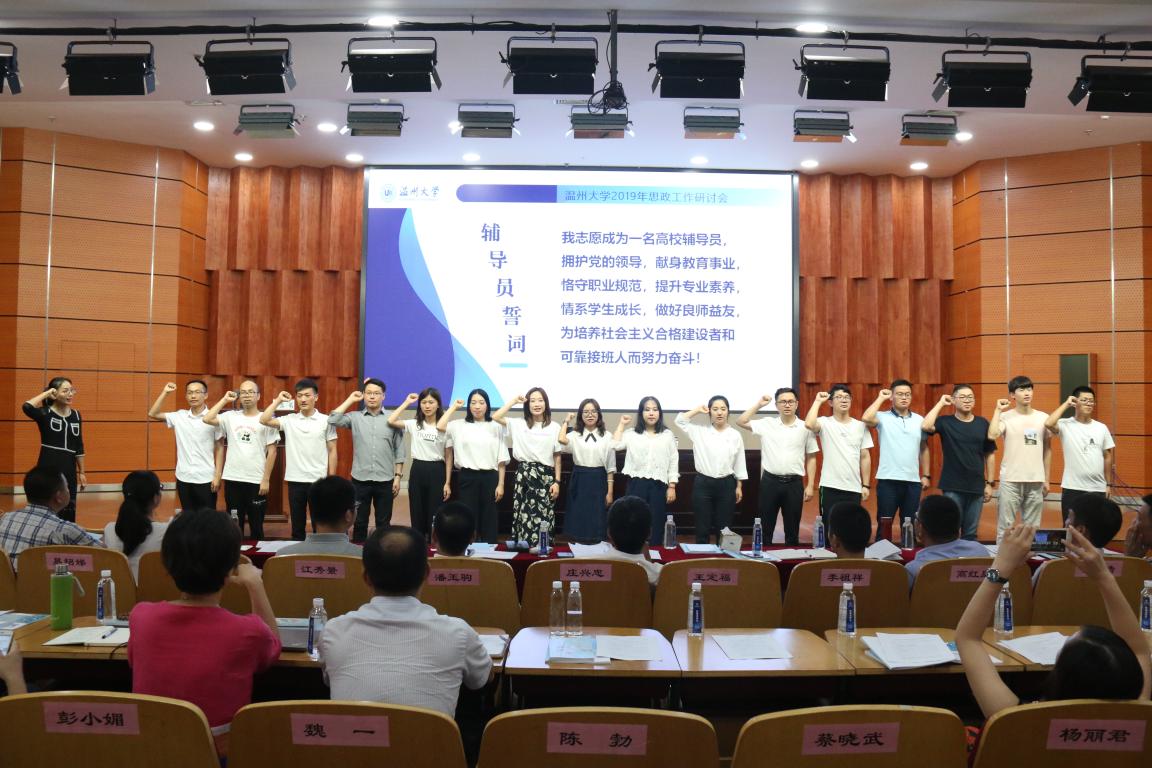 为深入学习贯彻习近平总书记关于加强和改进高校思想政治工作的一系列重要论述精神,聚焦新时代学校思政工作的新形势和新任务,提高认识、凝聚力量、明确方向,推动新形势学校“三全育人”工作迈上新台阶。8月26日,我校在雁山厅召开2019年思政工作研讨会。校党委副书记庄兴忠,党委委员、宣传部部长潘玉驹,各有关部门负责人,各学院分管书记,校本部全体辅导员、各学工部门及科室负责人,瓯江学院辅导员代表共140余人参加了本次研讨会。