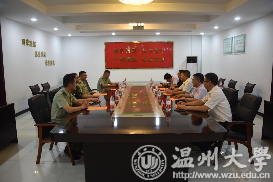 7月31日,在“八一”建军节即将来临之际,校党委副书记庄兴忠带领学生处、瓯江学院相关负责人来到武警温州支队驻地进行八一慰问活动,受到武警温州支队叶峰支队长、赵海艇政委等领导的欢迎,部队相关领导出席活动。