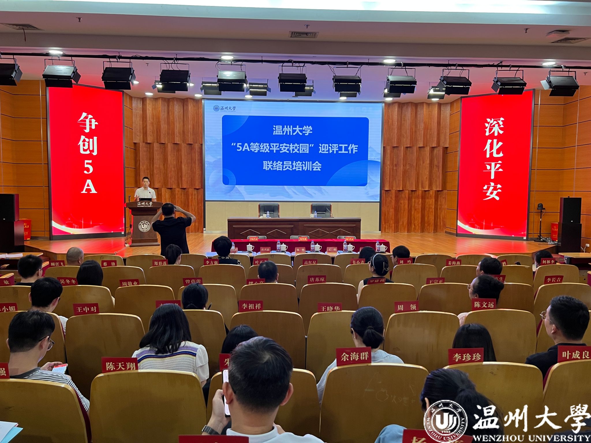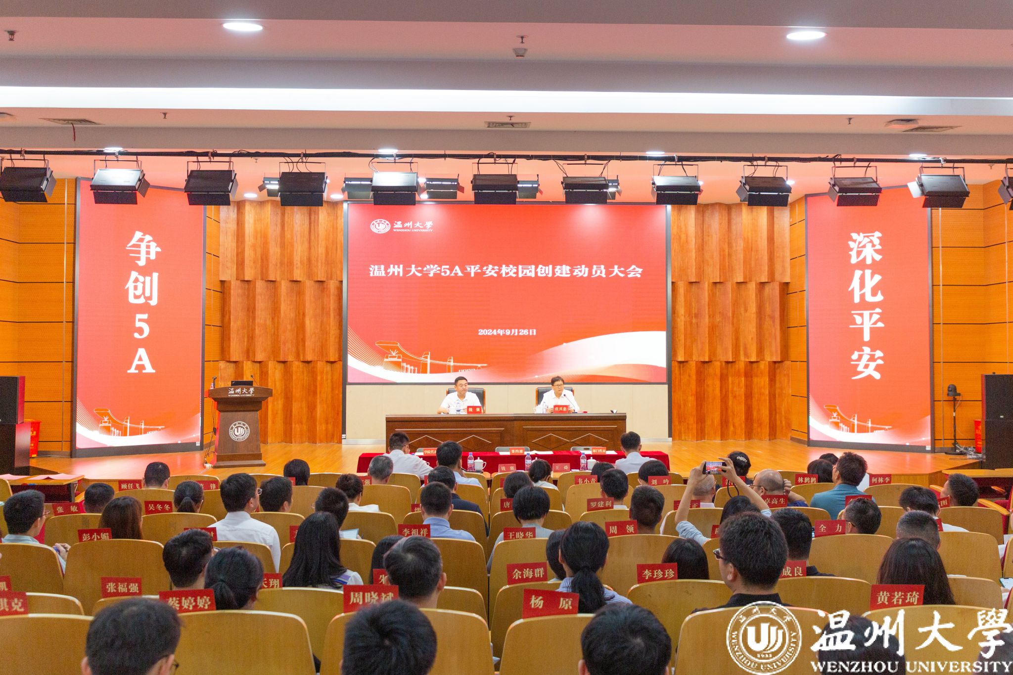 9月26日下午,我校在岩松堂雁山厅召开5A等级平安校园创建动员大会。校党委书记钱强出席会议并讲话。全体在校校领导、各学院、部门相关负责人、联络员及学生代表参加会议。校党委副书记庄兴忠主持会议。