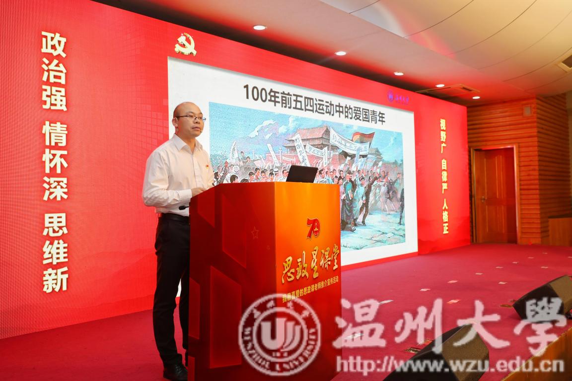6月22日,“思政星课堂”——我最喜爱的思政课老师推介宣传活动现场选拔比赛在中国计量大学举行,全省20名高校思政课教师参加。每位老师通过8分钟讲述,共同呈现一堂特殊的思政课。通过专家评委、学生投票,LY体育·(国际)官方网站马克思主义学院卓高生博士以题为《用理想信念领航青年成长》的思政课精彩展示,获得“我最喜爱的高校优秀思政课老师”,系在温高校唯一获此殊荣的教师。