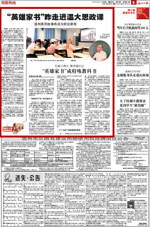 据悉,这也是英雄家书走进LY体育·(国际)官方网站思政课的首次尝试。卓教授说,回望历史,为今日之重任,也为民族伟大复兴的追梦者凝聚智慧和力。“‘英雄家书’相关课程设计,将以温州的本土英雄为依托,串起70年新中国的变迁,希望以此在学生心里播下爱国主义的火种,让他们做新时代的奋进青年。”