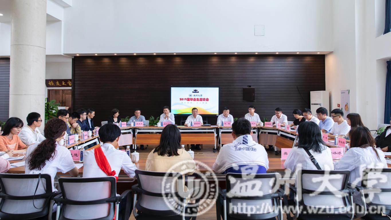 6月13日下午,我校在“校友之家”召开2019届毕业生代表座谈会,校党委书记谢树华、校长赵敏出席,党校办、研究生院、教务处、学工部、就业处、团委、后勤集团、瓯江学院等负责人以及来自全校各学院20余名优秀毕业生代表参加座谈会。会议由校党委副书记庄兴忠主持。