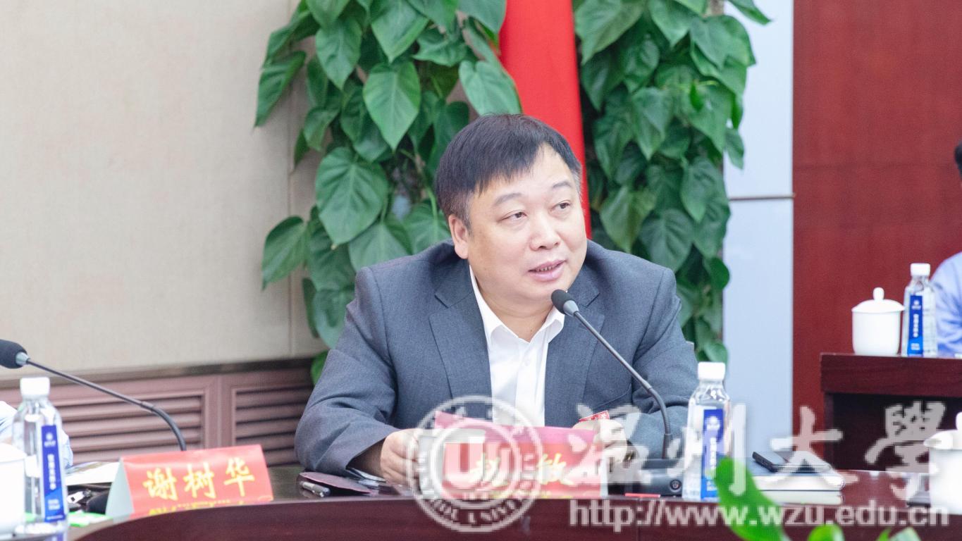 校党委书记谢树华作总结发言。他表示,校友是学校宝贵的资源和财富,校友强则母校强,母校荣则校友荣,校友和母校具有共生共荣、协同发展的紧密关系。他用三个“新”与校友们分享了学校发展与校友工作的感悟和思考。一是事业发展有新目标,学校通过明确了建设“高水平教学研究型大学”的办学定位,锚定了发展的“三大目标”,各项事业蓬勃发展,办学实力显著增强。二是校友工作有新成效,他如数家珍般对各地校友分会、校友代表的先进事迹进行了总结和肯定,指出校友组织日益健全、校友感情日益深厚、校友贡献日益突显,20多万校友商行天下、智行天下,为社会作出卓越贡献的同时,也为学校的发展提供了巨大支持。三是携手共进有新希望,他希望学校能为校友提供更好的服务,在校友工作上变单向服务为双向服务、变单一助力为多元助力、变定时联系为长期联系,构建功能齐全、结构完善的校友组织和网络信息渠道;同时他也希望校友们为母校的发展做好资源的对接者、项目的合作者、信息的传播者、形象的宣传者、捐赠的践行者。他衷心希望广大校友能够与母校携手共进、登高望远,共同书写新时代事业发展的新篇章。