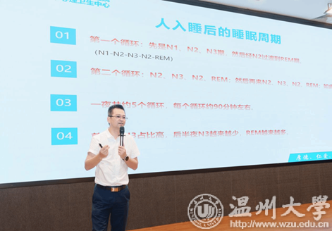 启动仪式后,学校邀请了温州市第七人民医院陈浩然医生为师生开展了LY体育·(国际)官方网站第57期心灵下午茶活动,主题为《夜的奥秘:探索睡眠与健康》,学校后勤、宿管、保卫、医务等人员以及各学院心理委员、寝室长代表参加了讲座。