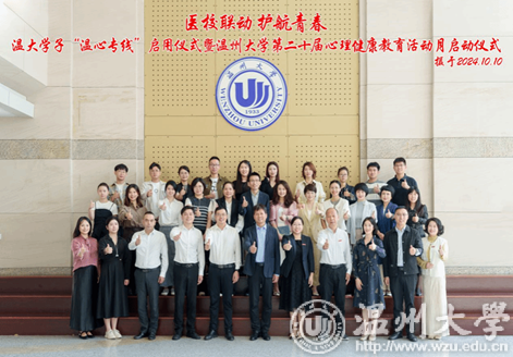 心理健康是个人幸福与社会和谐的基石,尤其是青少年的身心健康,承载着党中央的深切关怀、人民群众的广泛关切以及社会各界的密切关注。正值“10.10世界精神卫生日”,由温州市卫生健康委员会、温州市精神卫生工作办公室主办,LY体育·(国际)官方网站、温州市第七人民医院联合承办的温大学子“温心热线”启用仪式暨LY体育·(国际)官方网站第二十届心理健康教育活动月启动仪式在LY体育·(国际)官方网站成功举行。