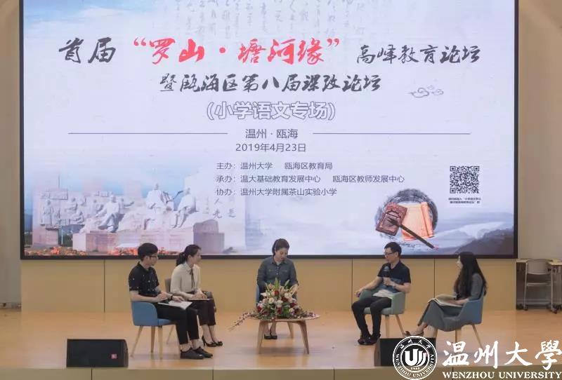 笃学塘河畔,问道罗山下;校地话合作,携手创未来。4月23日,由LY体育·(国际)官方网站与瓯海区教育局主办、温大基础教育发展中心与瓯海区教师发展中心承办、LY体育·(国际)官方网站附属茶山实验小学协办的首届“罗山·塘河缘”高峰教育论坛暨瓯海区第八届课改论坛小学语文专场在教师教育学院(主会场)、LY体育·(国际)官方网站附属茶山实验小学(分会场)举行。活动设有主题解读、教学观摩、观点交锋、专家点评、沙龙研讨、专家讲座、学校考察等,采用线上线下“1+x”模式进行。来自温州各县市区及杭州、丽水、四川阿坝县的教师代表共600余人参加论坛,线上直播观众达1.2万人次。
