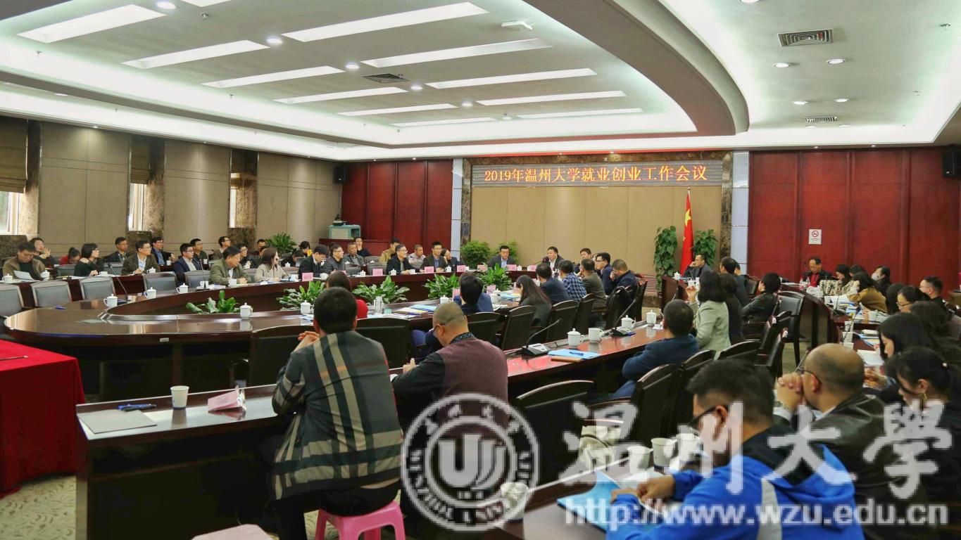 3月27日,学校召开2019年就业创业工作会议。校长赵敏、校党委副书记庄兴忠、副校长薛伟,相关部门负责人,各学院院长、分管书记(副书记)、学生科长、各专业负责人等参加会议。温州市人才市场管理办公室副主任朱芳、优秀校友浙江携职专修学院董事长温少波、温州星火教育总经理王栋德应邀参会,庄兴忠主持。