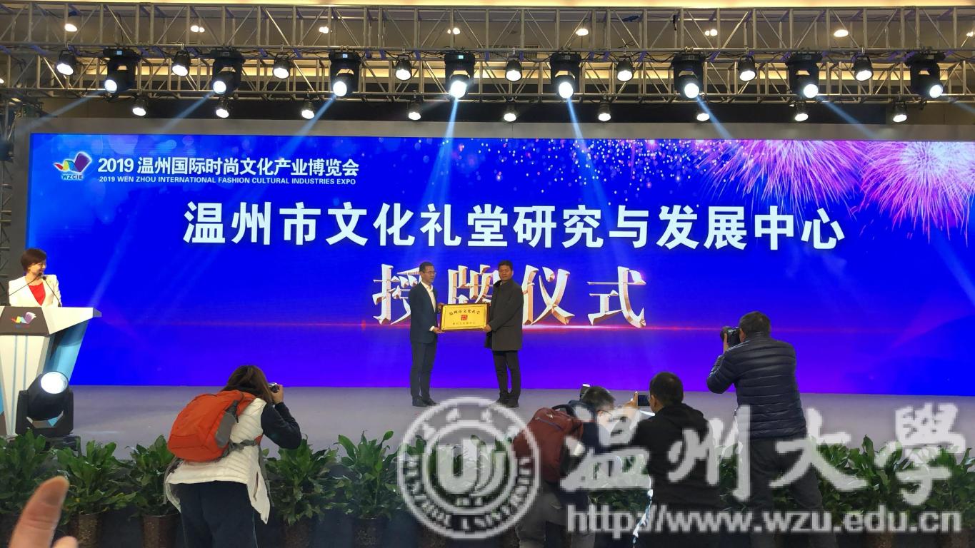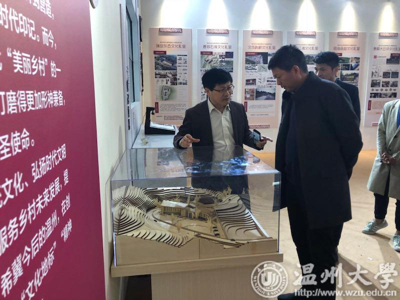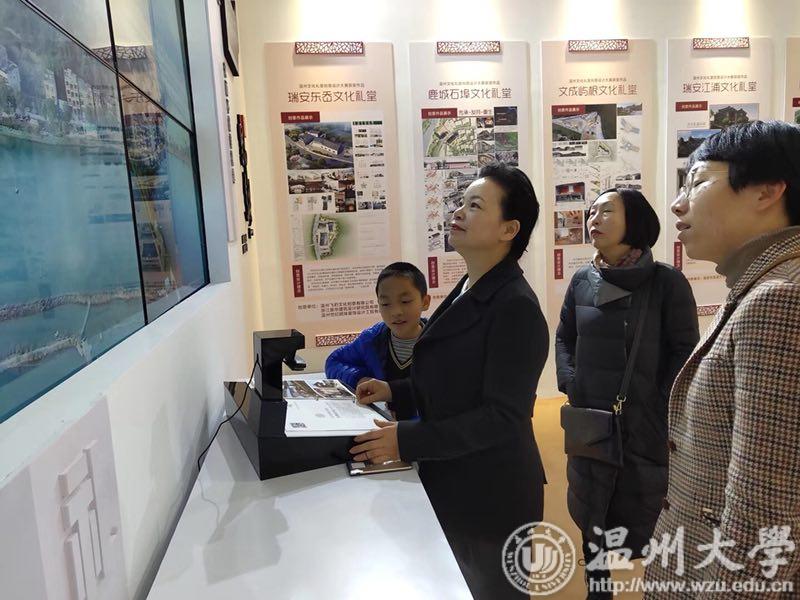 在2019温州国际时尚文化产业博览会闭幕式上,校党委副书记庄兴忠、市委宣传部常务副部长邱小侠为大赛获奖者颁奖。获奖作品集中在文博会上以“礼泽吾乡”为主题,进行为期5天的展览。展览分“礼归瓯越”“如沐乡风”“撷珍乡梓”“栖寄乡园”“守望乡愁”“熹光长润”六大板块。设计师的不同创意、独特风格,为文化礼堂建设提供了不同视角、全新理念。展览上除展板展示以外,还设置了多组由我校建筑工程学院学生精心制作的文化礼堂建筑模型,更为直观、更具品质感。展览吸引了不少市民驻足观看,市委常委、宣传部部长胡剑谨,校党委副书记庄兴忠兴也到展区参观作品并给予高度评价。