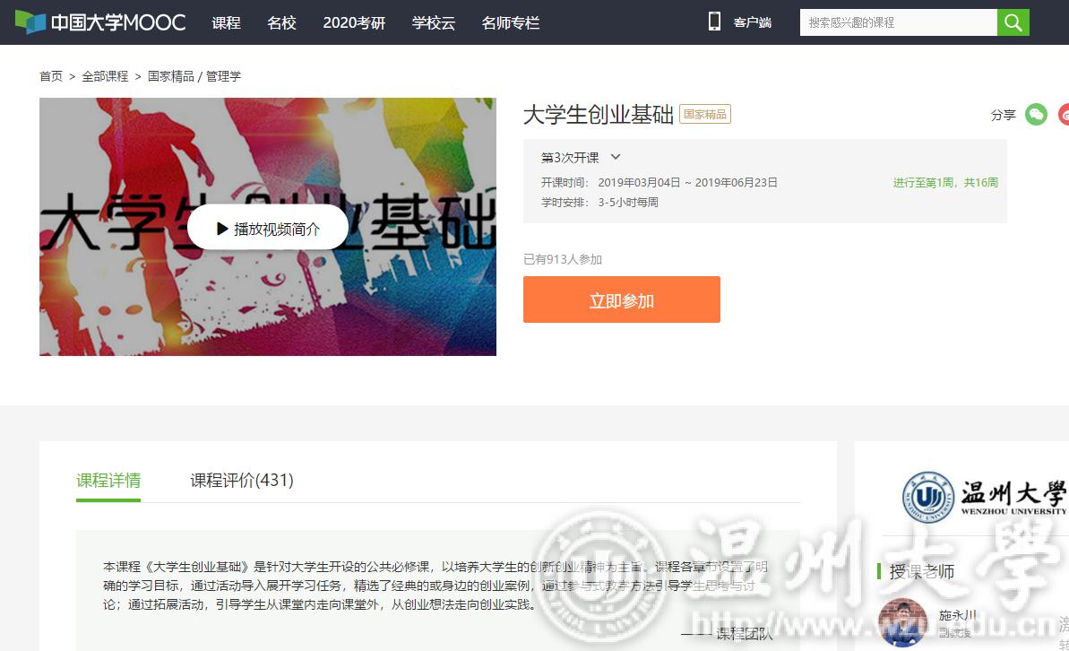 课程链接:https://www.icourse163.org/course/WZU-1002597030