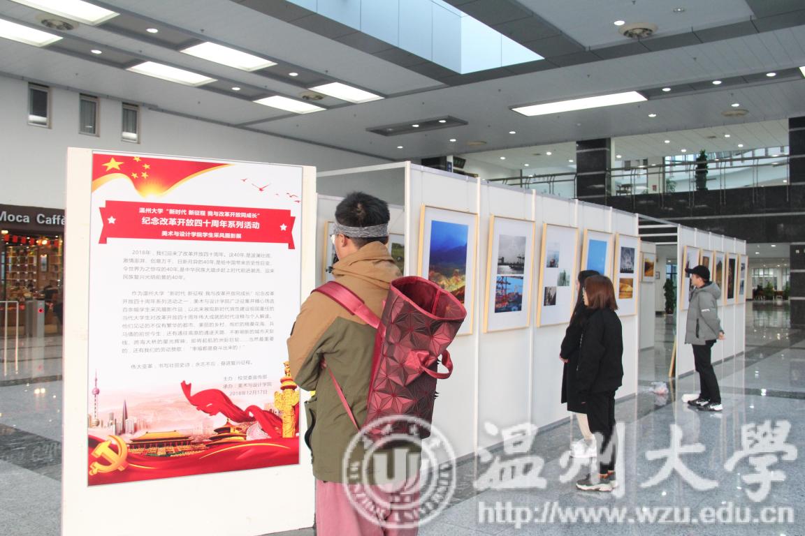 12月17日,“新时代新征程我与改革开放同成长”纪念改革开放四十周年学生采风摄影展,在育英图书馆一楼大厅开展。本次摄影展由美术与设计学院承办,是我校纪念改革开放四十周年系列活动之一。活动共征集并精心筛选50多位学生的110余幅采风摄影作品,作品内容涉及美丽乡村、城市建设、民族风情、人文非遗、历史古迹、壮丽河山、人与自然等诸多内容,以此来展现新时代肩负建设祖国重任的当代大学生对改革开放四十周年伟大成就的时代诠释与解读。图片见证的不仅有繁华的都市、美丽的乡村、绚烂的格桑花海、兵马俑的前世今生,还有通往高原的通途天路、不断刷新的城市天际线、跨海大桥的星光辉映、即将起航的洲际巨轮……图片诠释的更是劳动赞歌:“幸福都是奋斗出来的!”更寓意着:伟大变革,书写壮丽史诗;永志不忘,奋进复兴征程。