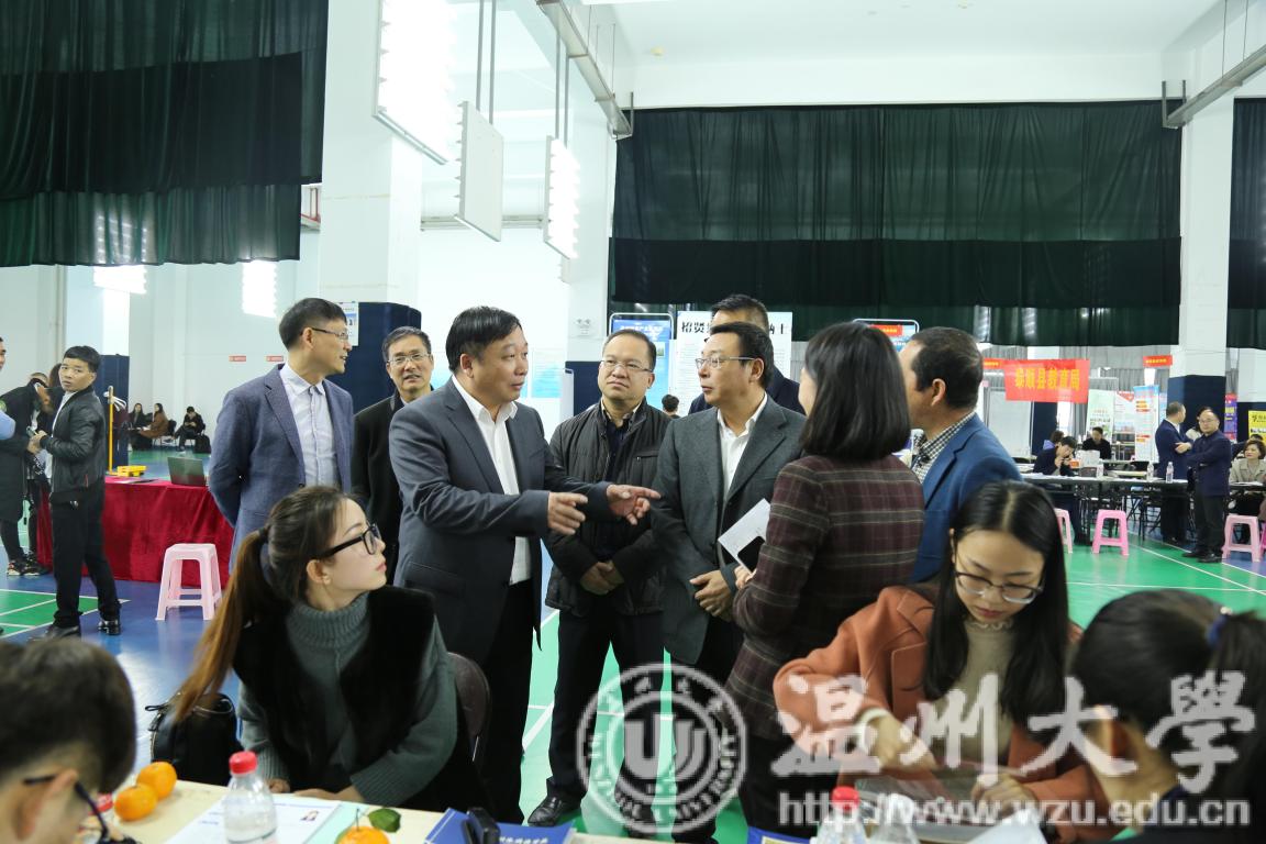 11月28日,温州市教育系统温大专场招聘会在我校举行。温州市教育局党委书记、局长郑建海、副局长伍挺和校长、党委副书记赵敏等到现场指导,并与毕业生和用人单位负责人亲切交流。