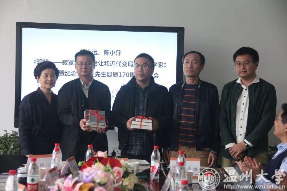 紧接着,14日下午2时,作家胡小远、陈小萍所著《蝉蜕——寂寞大师孙诒让和近代变局中的经学家》首发式暨纪念孙诒让先生诞辰170周年研讨会在人文学院213会议室举行。来自北京、上海、杭州和温州本地的近20位学者和作家出席本次会议,人文学院院长孙良好主持。