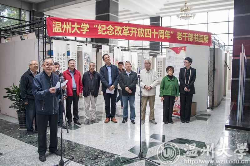 党委副书记牟德刚出席书画展并致开幕词。他指出,这次书画展是我校纪念改革开放40周年的系列活动之一,目的就是教育引导广大师生铭记这段不平凡的历史,讴歌所取得的非凡成就;就是要团结激励广大师生弘扬优良传统,不忘初心、砥砺前行,为新时代中国特色社会主义做出新贡献。老干部书画院院长冯大明发表讲话。学校老领导金礼义、林选青、毛政敏,校党委委员、宣传部部长潘玉驹等出席开展仪式。