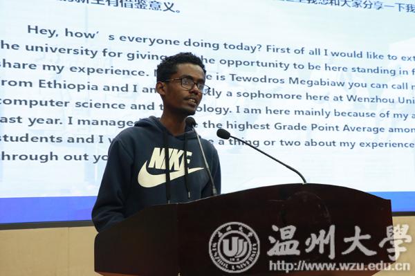 来自埃塞俄比亚的2017级国际本科生老生代表MEGABIAW分享了自己的求学经历,建议新生要有良好的时间规划,走出自己的“舒适区”,融入中国这个新家庭。来自意大利的2018级国际研究生新生代表VIVIANA用流利的中文发表了演讲,发音标准,赢得全场热烈的掌声。她表示,自己在2017年曾作为交换生来LY体育·(国际)官方网站求学,温州的包容和老师们的热情、耐心给了她温暖,为此今年又申请来温大留学。