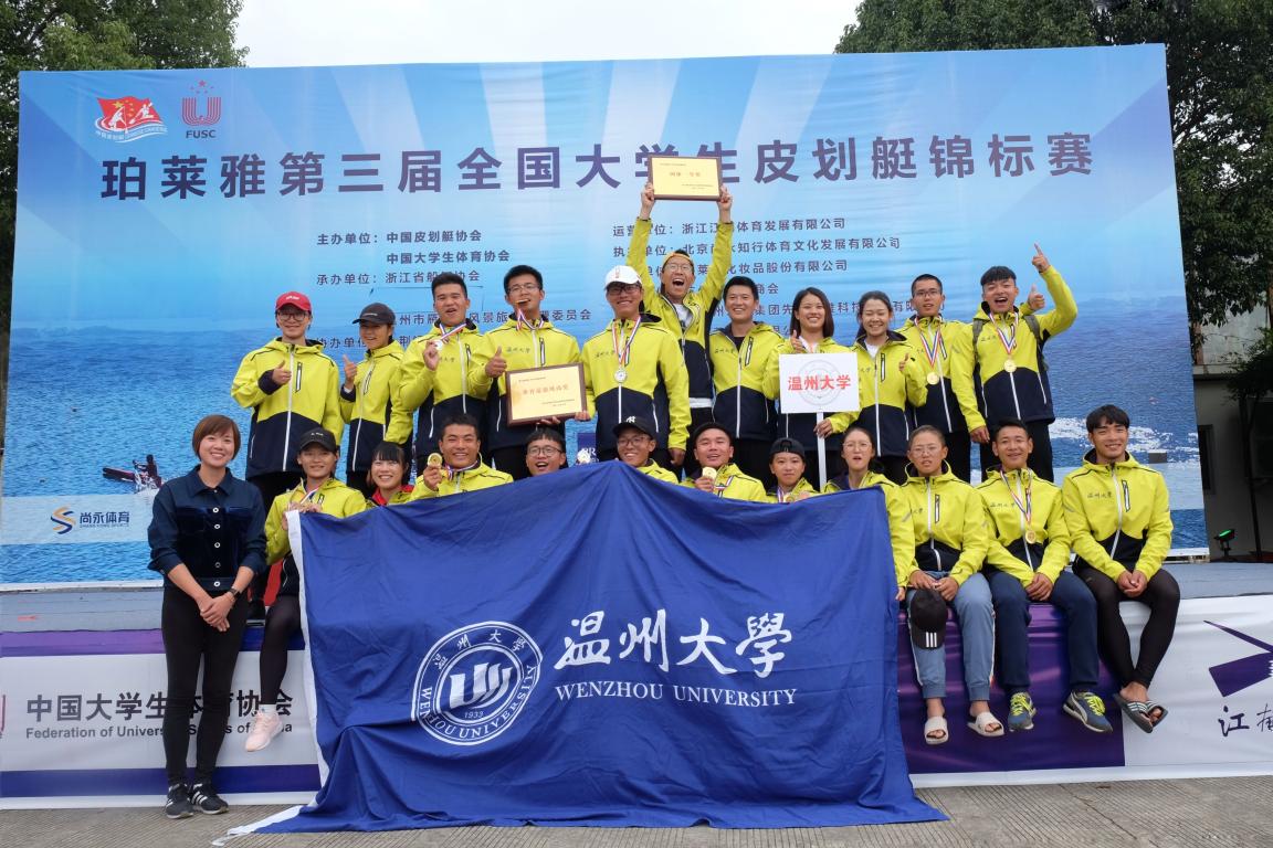 我校体育学院水上运动队共派出21名参赛队员,在领队叶建强和教练朱敏圆的带领下,参加了本次赛事11个小项的比赛,经过2天的激烈角逐,我校学生不畏强手,最终获得4金1银3铜,共计8枚奖牌的好成绩,获得团体总分第一。取得了我校水上训练队在全国大学生皮划艇锦标赛中的最好成绩!
