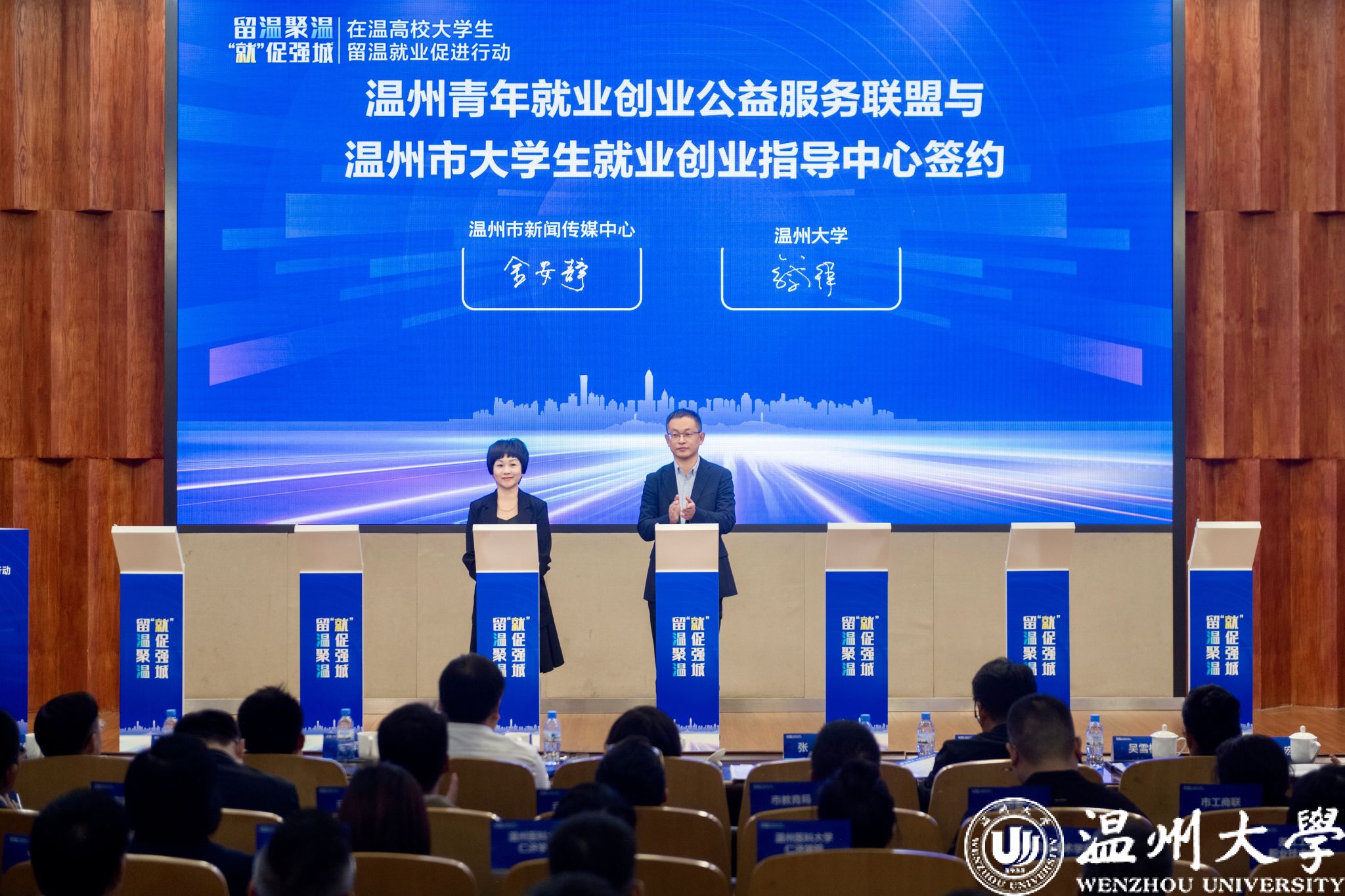 LY体育·(国际)官方网站招生与就业处负责人作为校方代表分别与浙江大学温州研究院、温州湖南商会现场合作签约。LY体育·(国际)官方网站生就业创业指导中心与温州青年就业创业公益服务联盟共结促就业创业联盟。