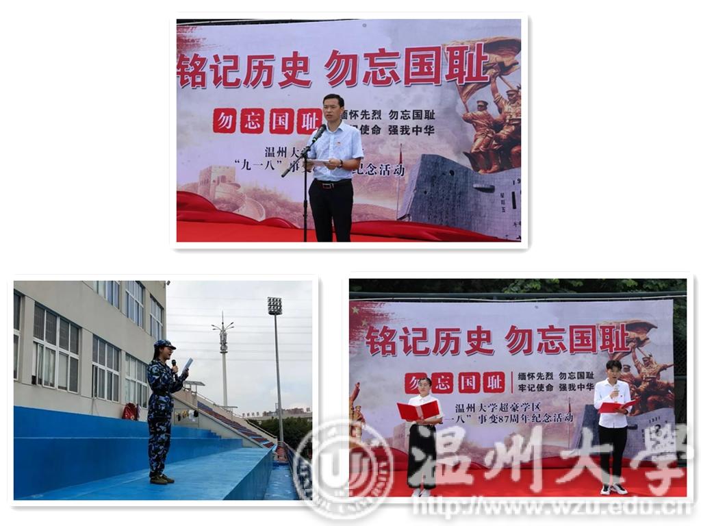 超豪学区党委书记何毅作“九一八”事变纪念活动讲话,第六党支部茅柯贤、倪羽筝两位同学给全体新生带来一堂激情澎湃的微党课,步青学区18环境科学陈婉婷同学作《勿忘国殇,吾辈自强》主题演讲。全场肃穆,演讲激昂,催人奋进。全体大一新生在教官带领下,唱响嘹亮的军歌。