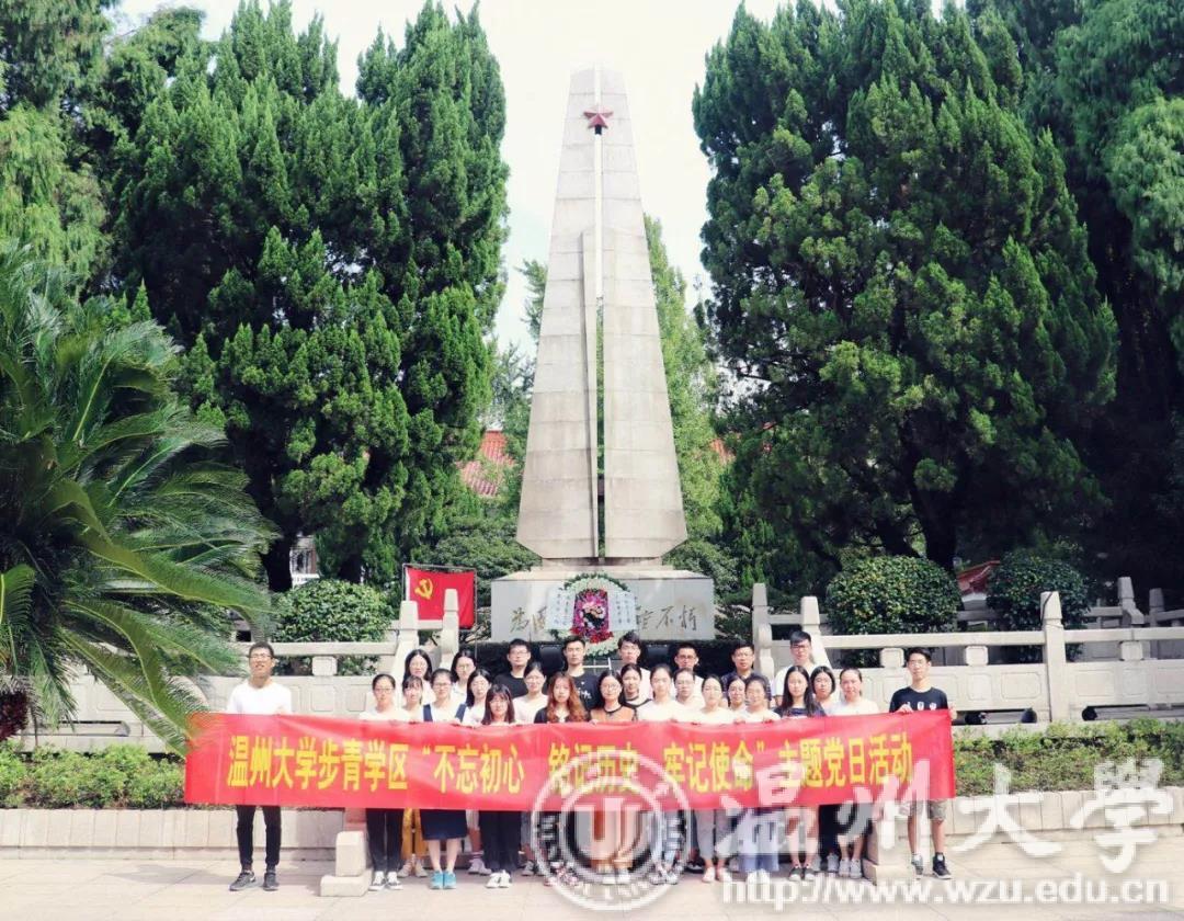 步青学区师生党员代表28人前往江心屿烈士革命纪念馆,开展“不忘初心,铭记历史,牢记使命”党日活动:为烈士敬献花圈,缅怀革命先烈;重温入党誓词,聆听革命事迹,不忘初心、牢记使命,永葆党员本色。