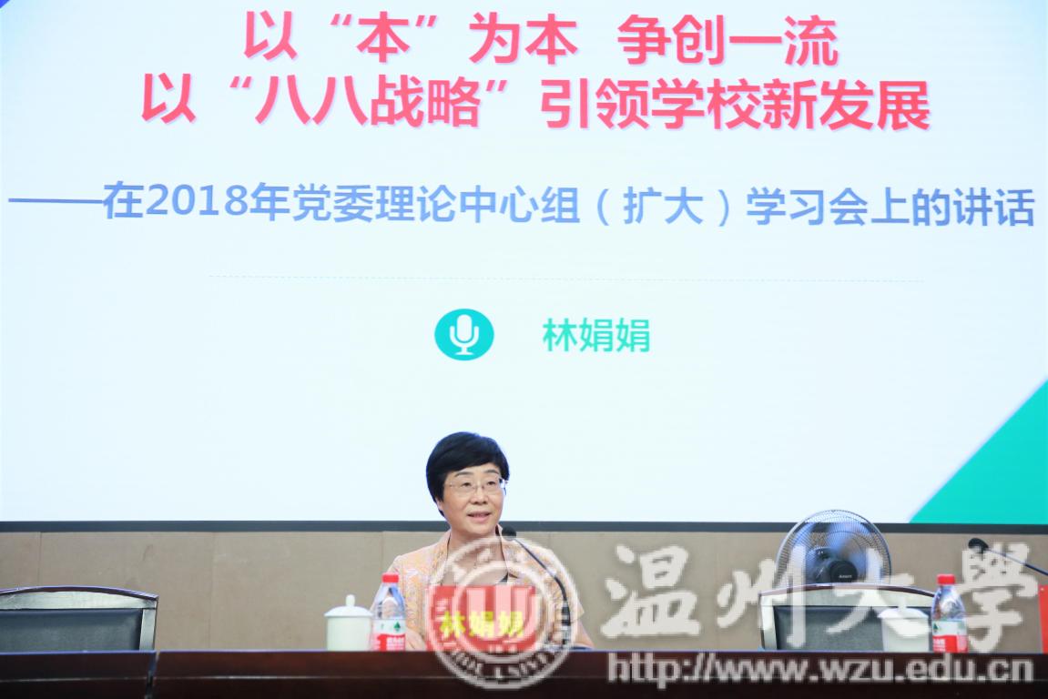 林娟娟提出,提神振气,真抓实干,用“八八战略”引领学校新发展。她结合自己学习“八八战略”的体会,指出贯彻落实“八八战略”精神,需要着力在“彰显担当”上下功夫。她回顾了学校上半年的工作,并就下半年重点工作作部署,指出全校上下要统一思想,凝心聚力,进一步加强党建和思想政治工作,推进应用型大学建设,提高开放办学水平,以更加优异的成绩谱写温大新篇章。
